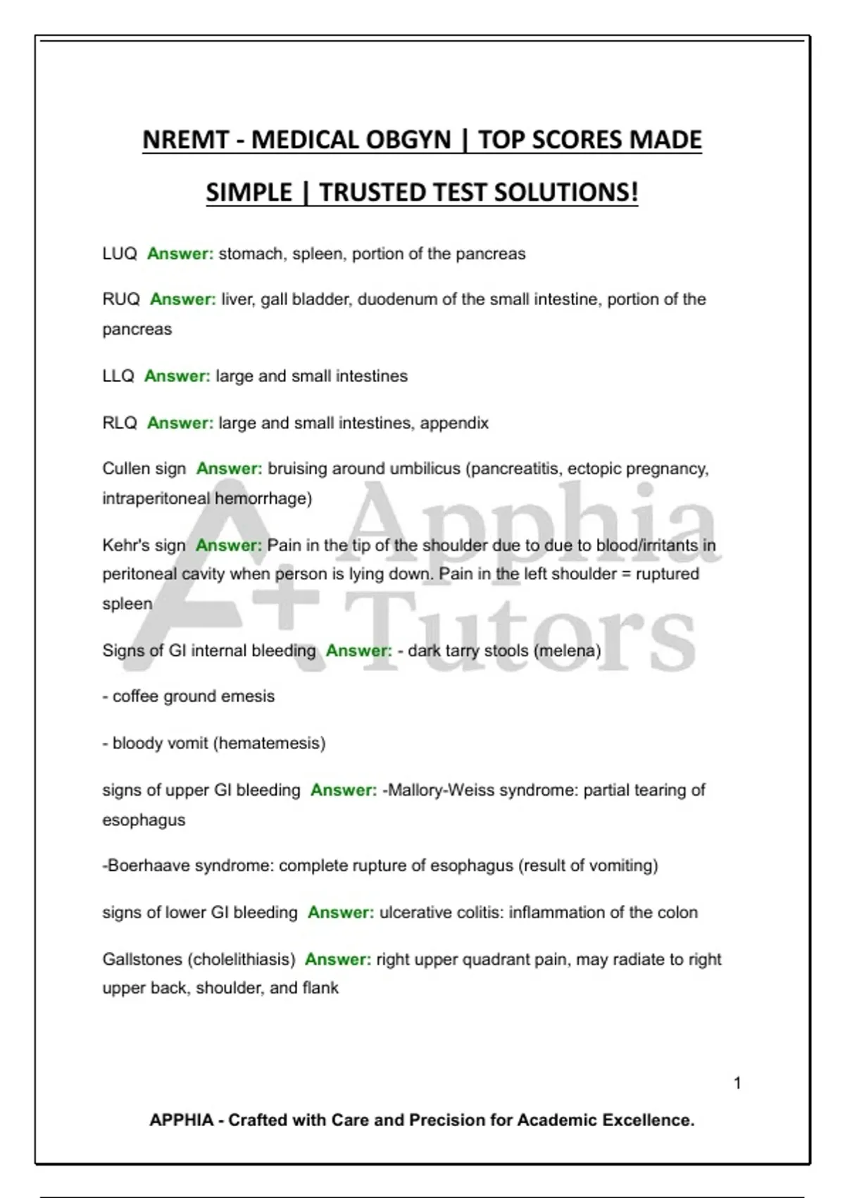 NREMT - MEDICAL OBGYN | TOP SCORES MADE SIMPLE | TRUSTED TEST SOLUTIONS!