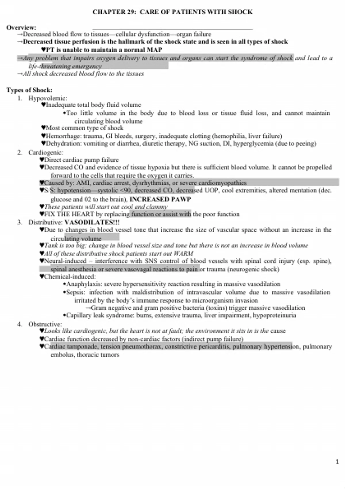 CHAPTER 29: CARE OF PATIENTS WITH SHOCK
