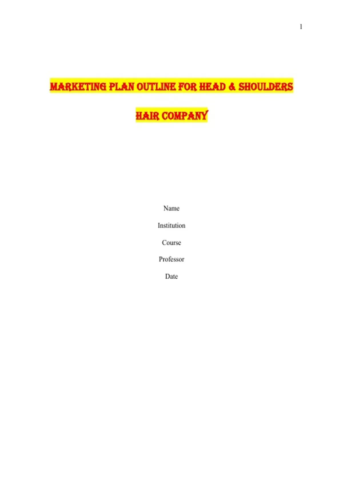 Marketing Plan Outline for Head & Shoulders Hair Company
