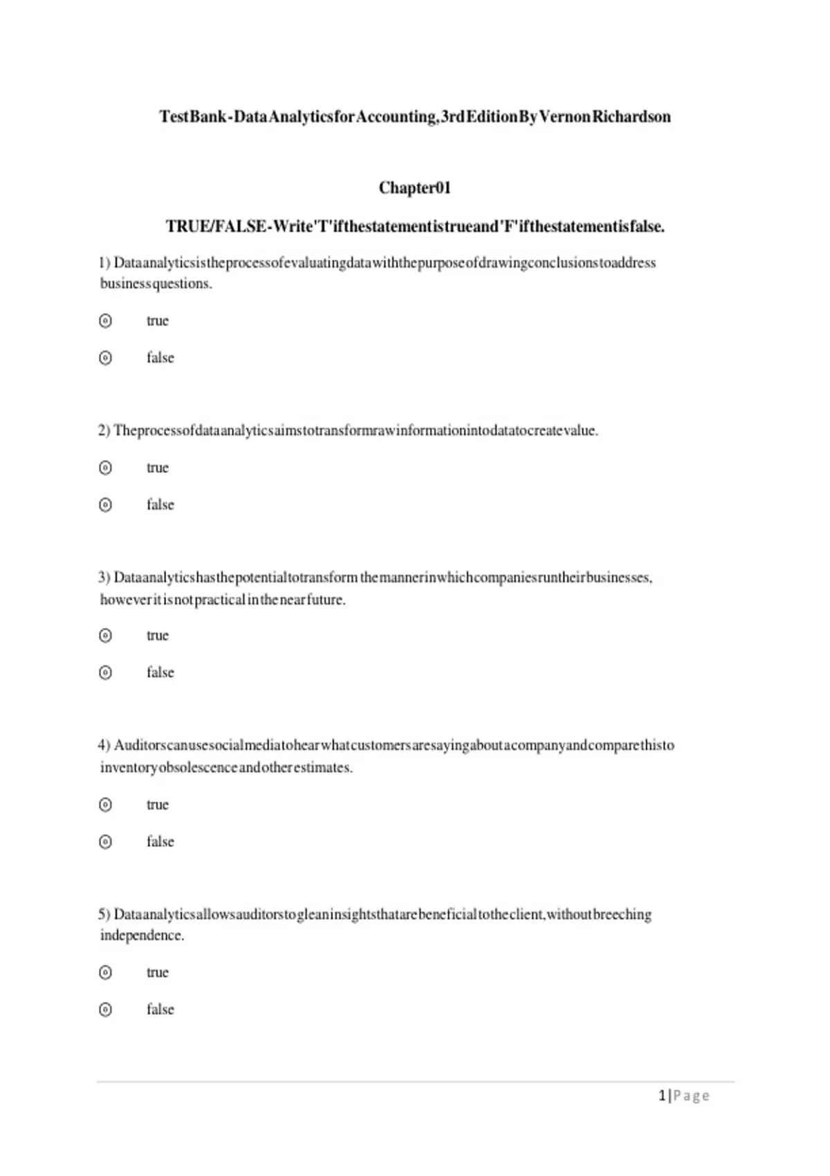 Test Bank - Data Analytics for Accounting, 3rd Edition By Vernon Richardson