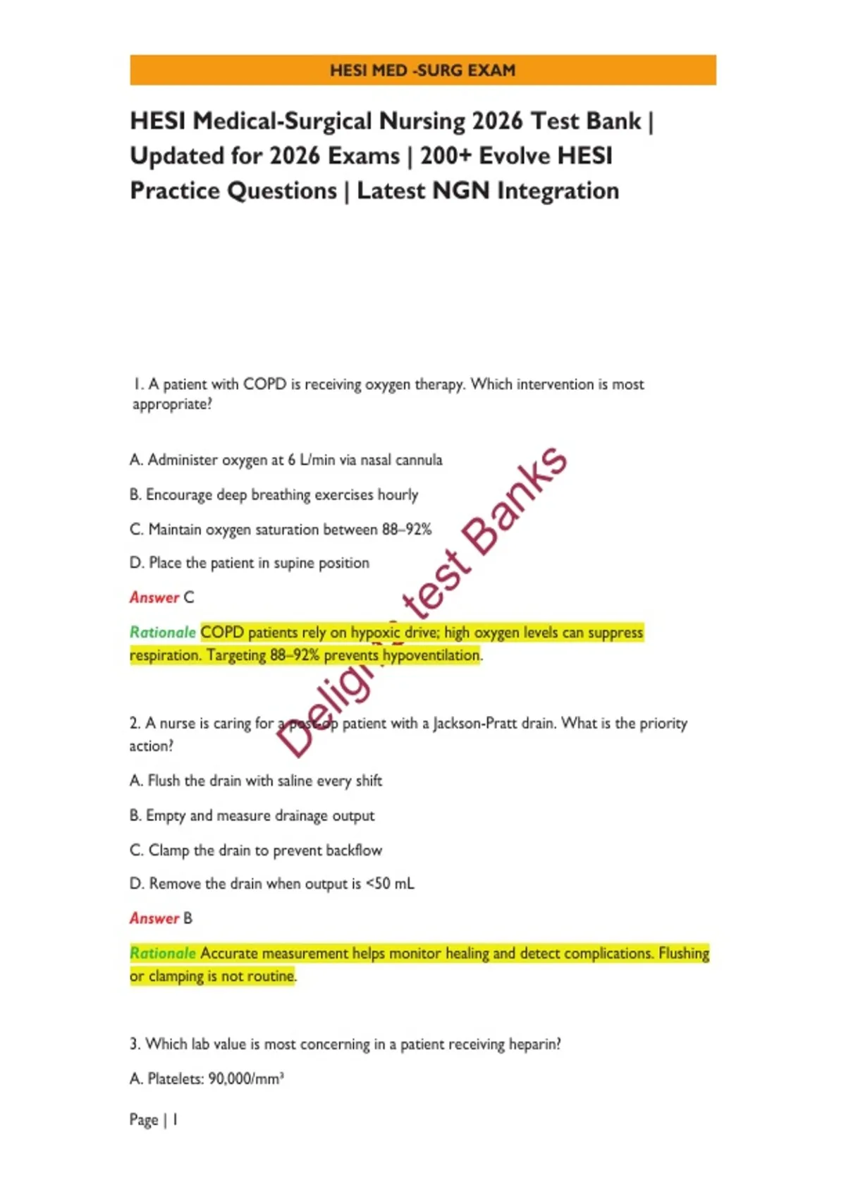 HESI Medical-Surgical Nursing 2026 Test Bank | Updated for 2026 Exams | 200+ Evolve HESI Practice Questions | Latest NGN Integration