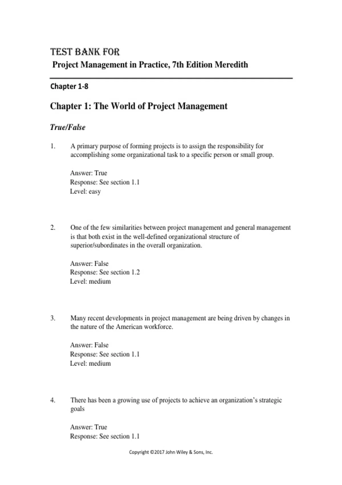 This document provides a complete test bank for Project Management in Practice, 7th Edition by Meredith, covering key project management concepts, tools, and real-world applications. It is designed to help students prepare for exams by practicing scenario-based and conceptual questions aligned with the textbook content.