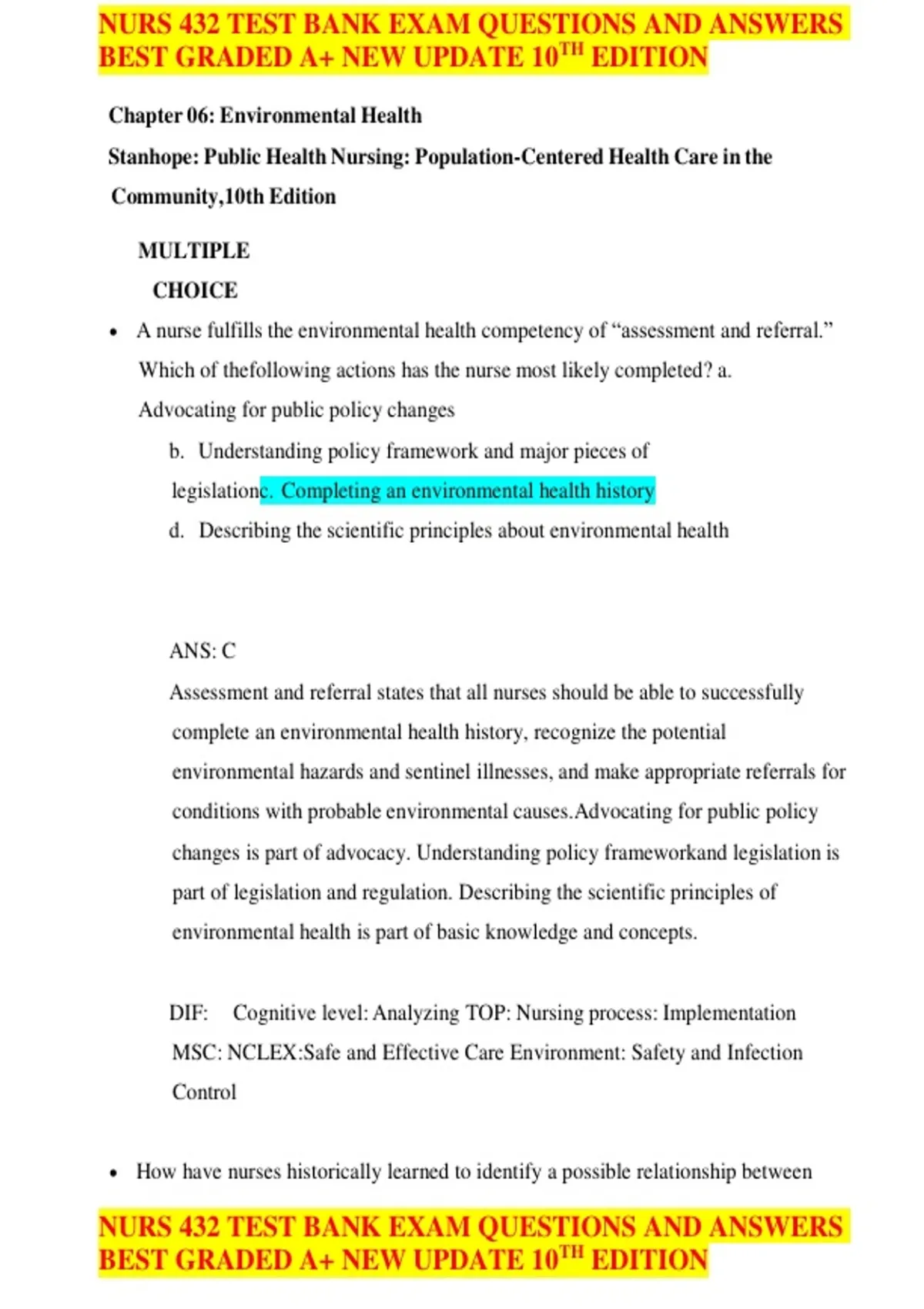 NURS 432 TEST BANK EXAM QUESTIONS AND ANSWERS