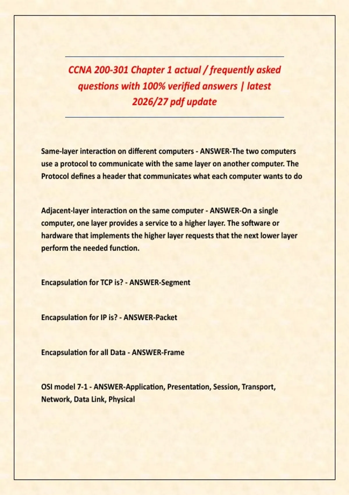 CCNA 200-301 Chapter 1 actual / frequently asked questions with 100% verified answers | latest 2026/27 pdf update