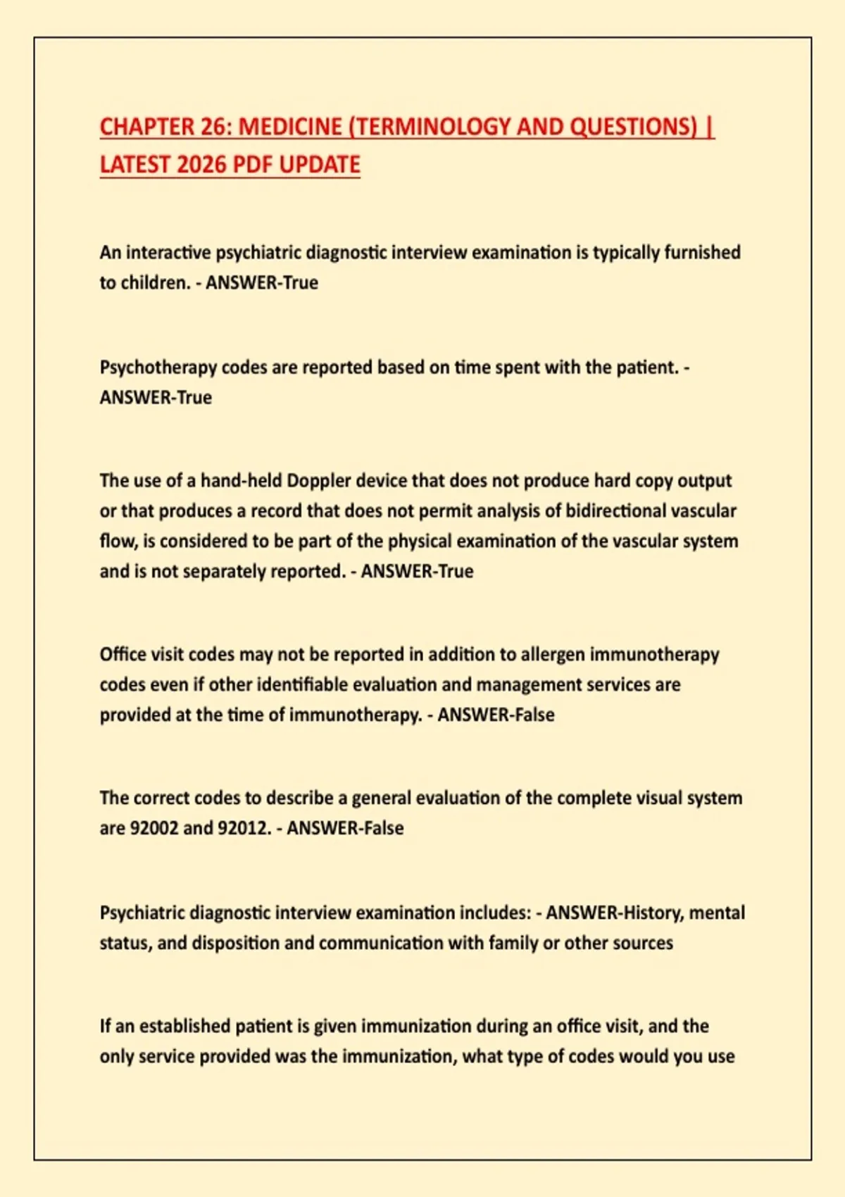 CHAPTER 26: MEDICINE (TERMINOLOGY AND QUESTIONS) | LATEST 2026 PDF UPDATE