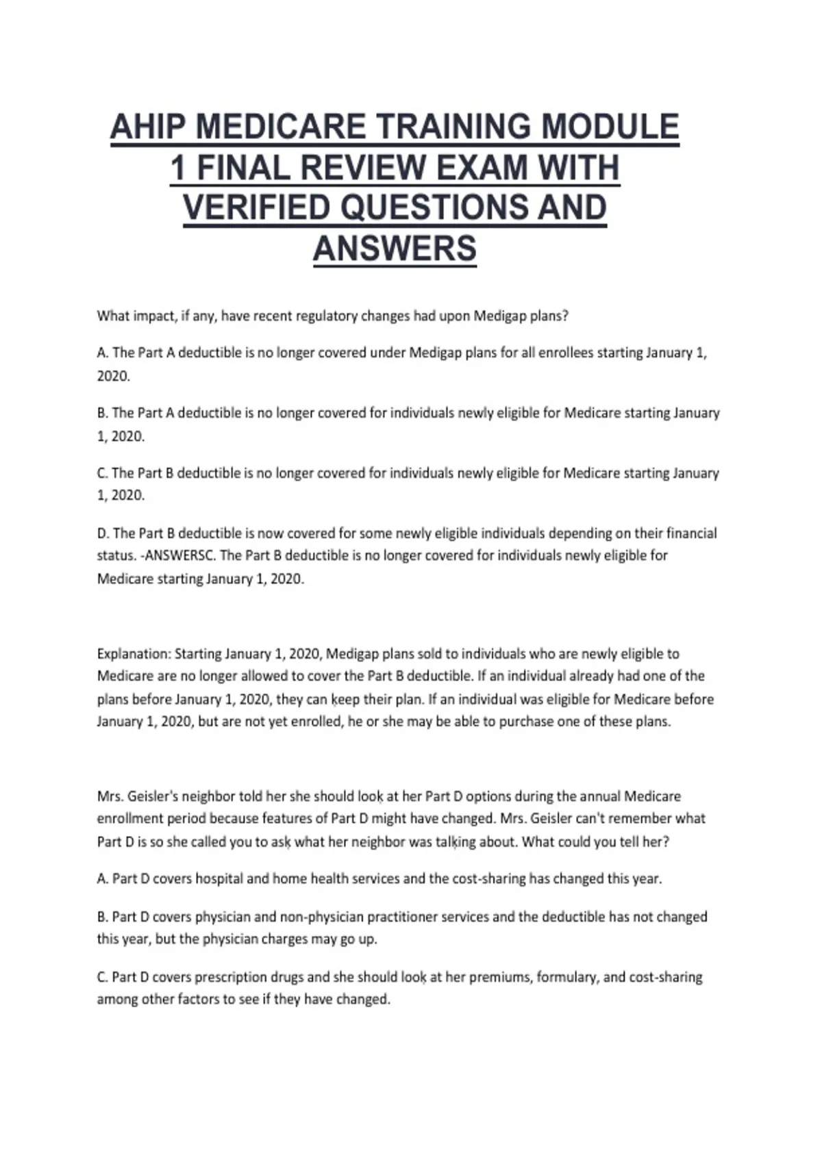 Explanation: Starting January 1, 2020, Medigap plans sold to individuals who are newly eligible to