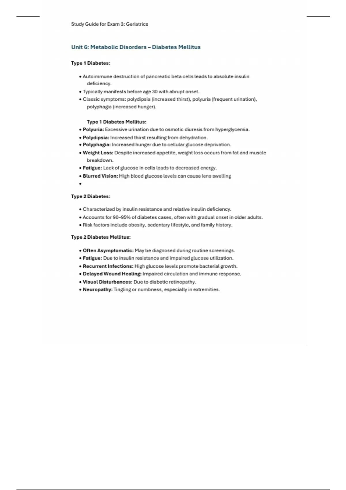 Unit 6: Metabolic Disorders – Diabetes Mellitus