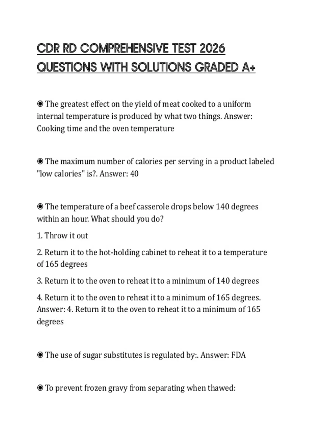 ◉ The temperature of a beef casserole drops below 140 degrees