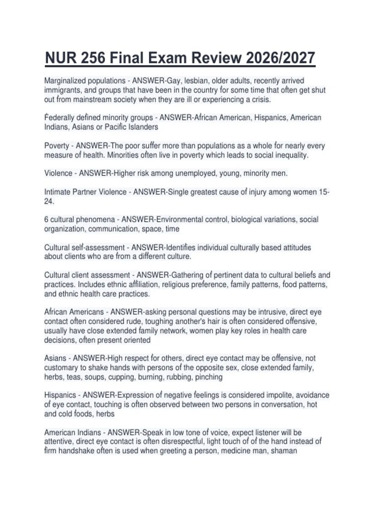 Asians - ANSWER-High respect ḟor others, direct eye contact may be oḟḟensive, not