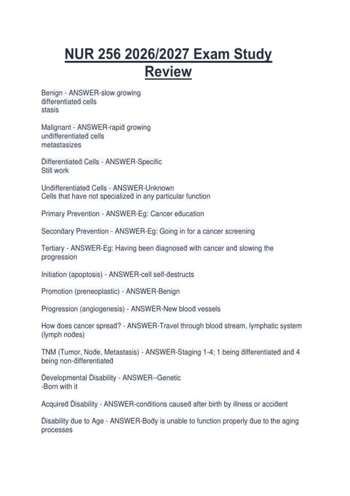 Unḋifferentiateḋ Cells - ANSWER-Unknown