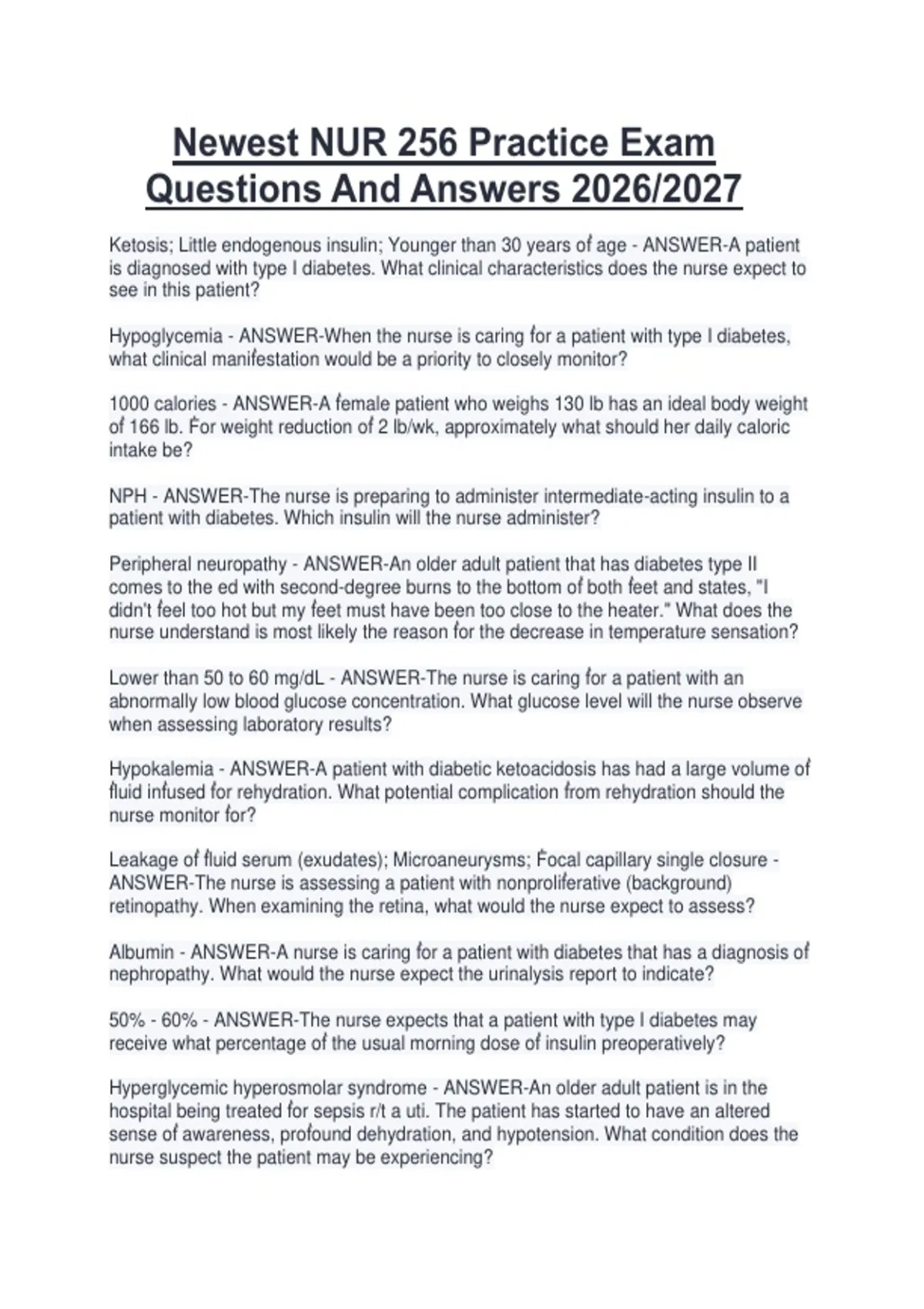 Newest NUR 256 Practice Exam Questions And Answers 2026/2027