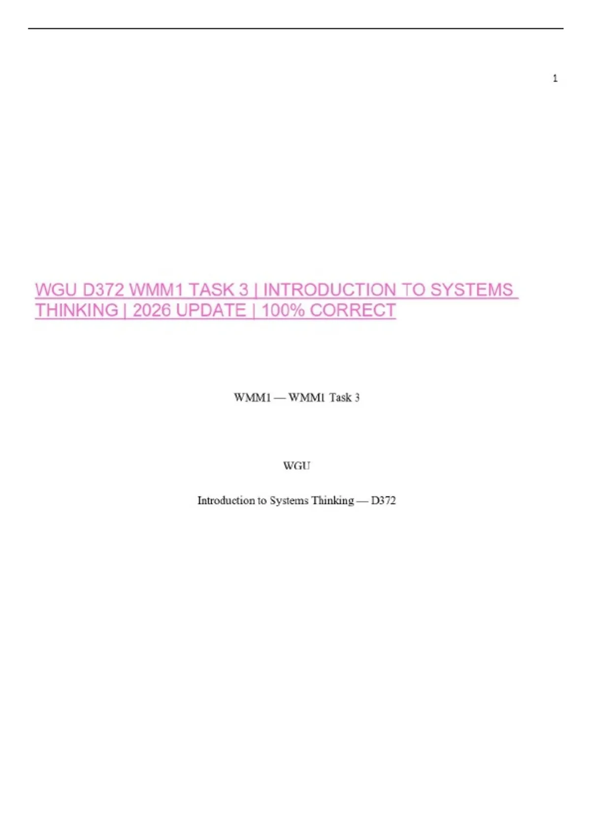 WGU D372 WMM1 TASK 3 | INTRODUCTION TO SYSTEMS THINKING | 2026 UPDATE | 100% CORRECT