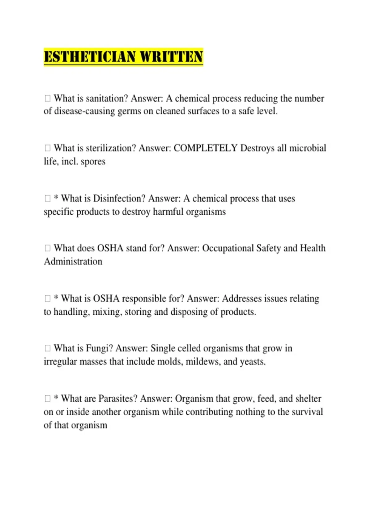 Esthetician Written