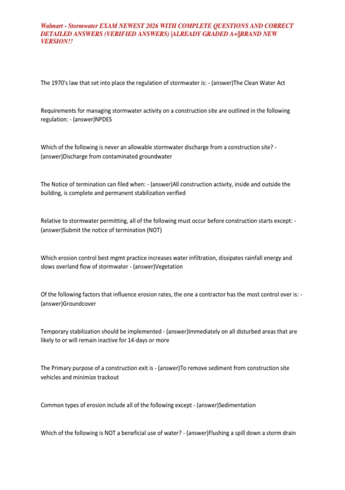 Walmart - Stormwater EXAM NEWEST 2026 WITH COMPLETE QUESTIONS AND CORRECT