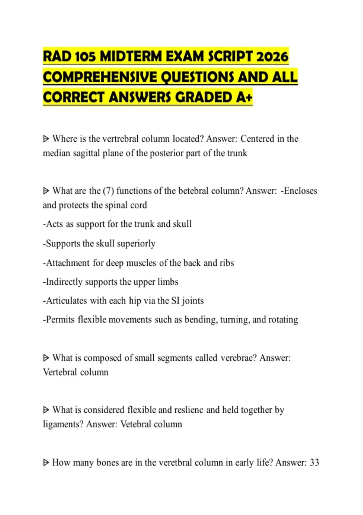RAD 105 MIDTERM EXAM SCRIPT 2026 COMPREHENSIVE QUESTIONS AND ALL CORRECT ANSWERS GRADED A+