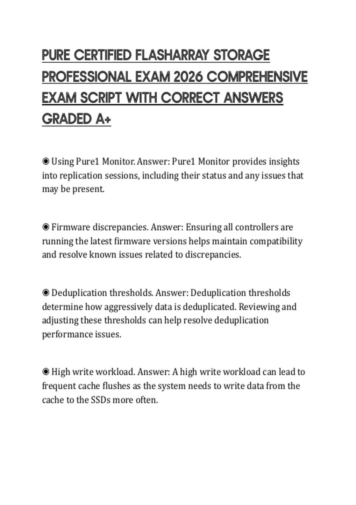 ◉ Loss of access to all volumes. Answer: When a Pure FlashArray