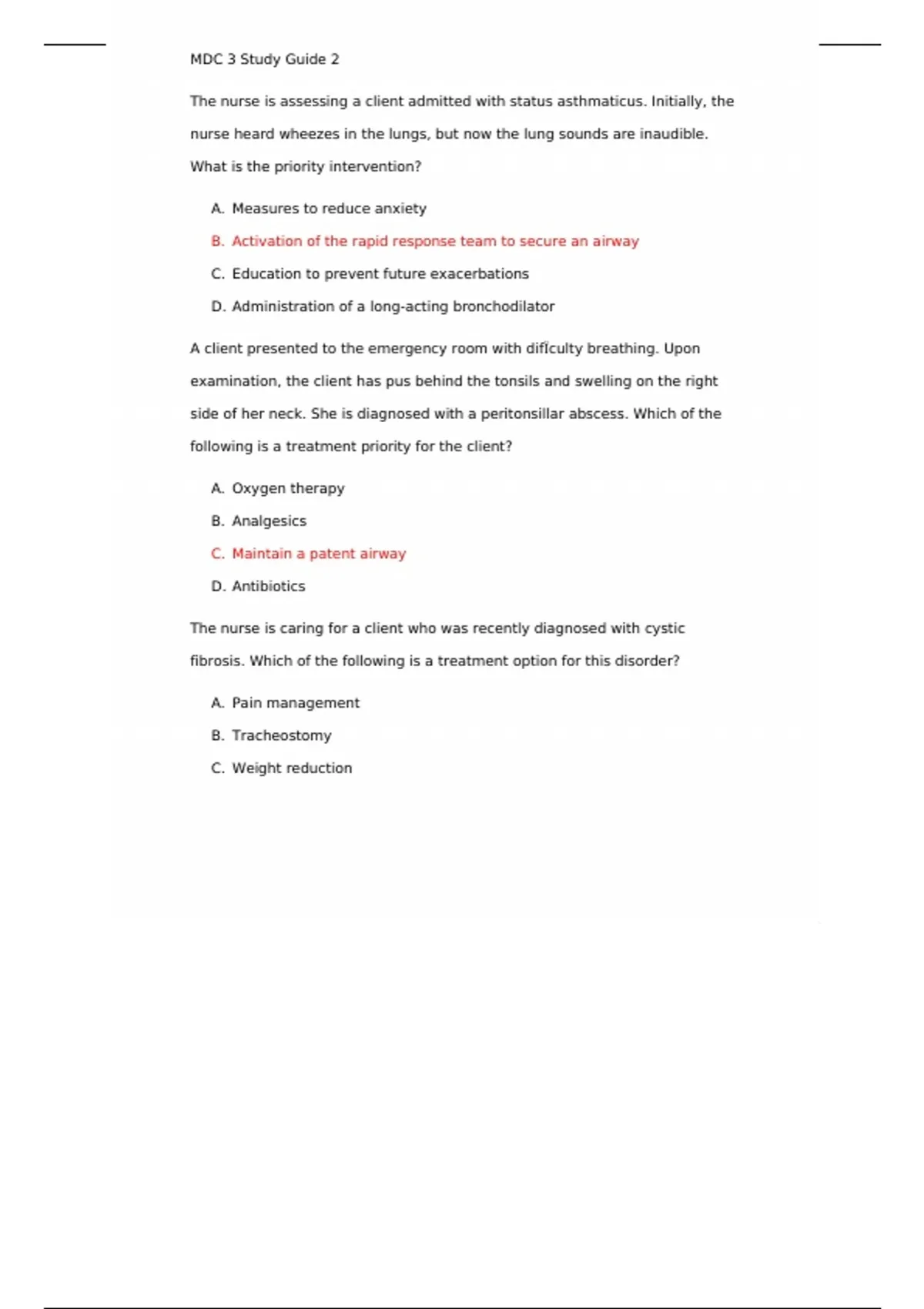 MDC 3 Study Guide 2_ Key Interventions for Respiratory Conditions