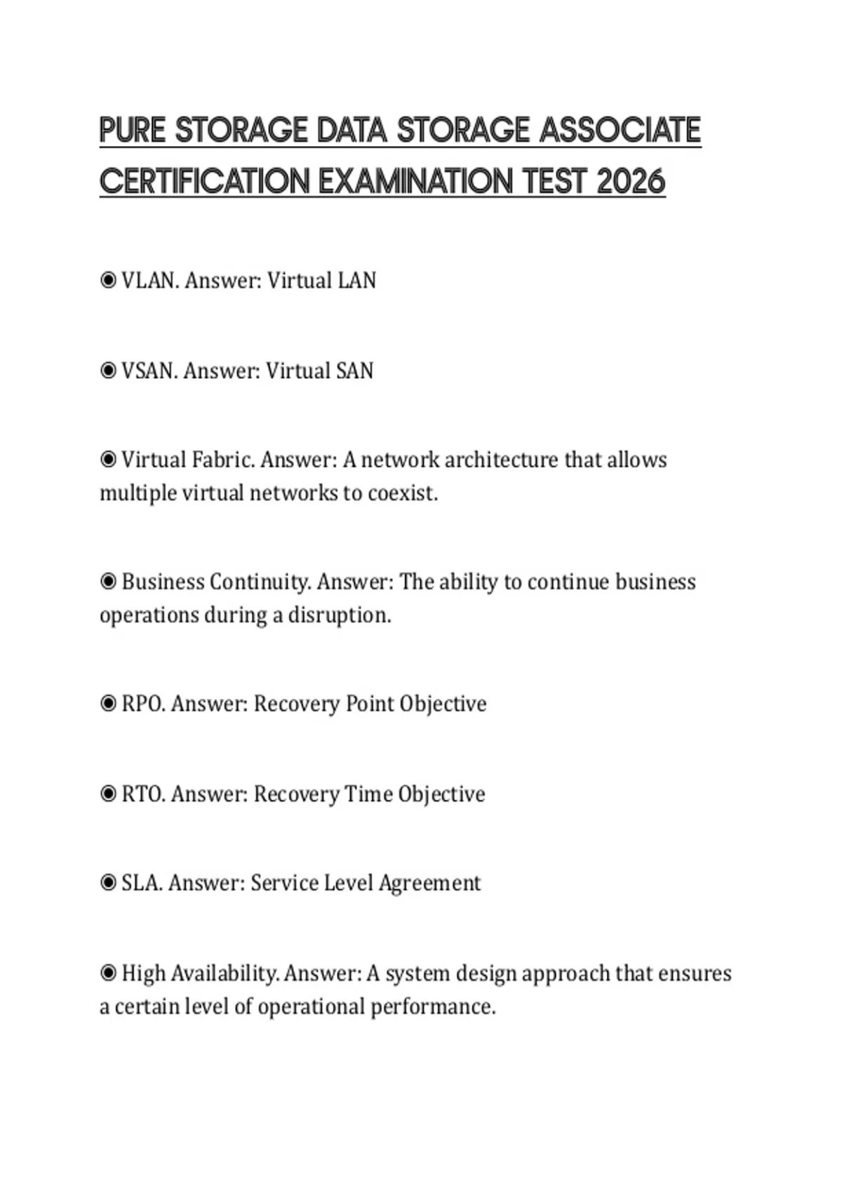 ◉ RTO. Answer: Recovery Time Objective