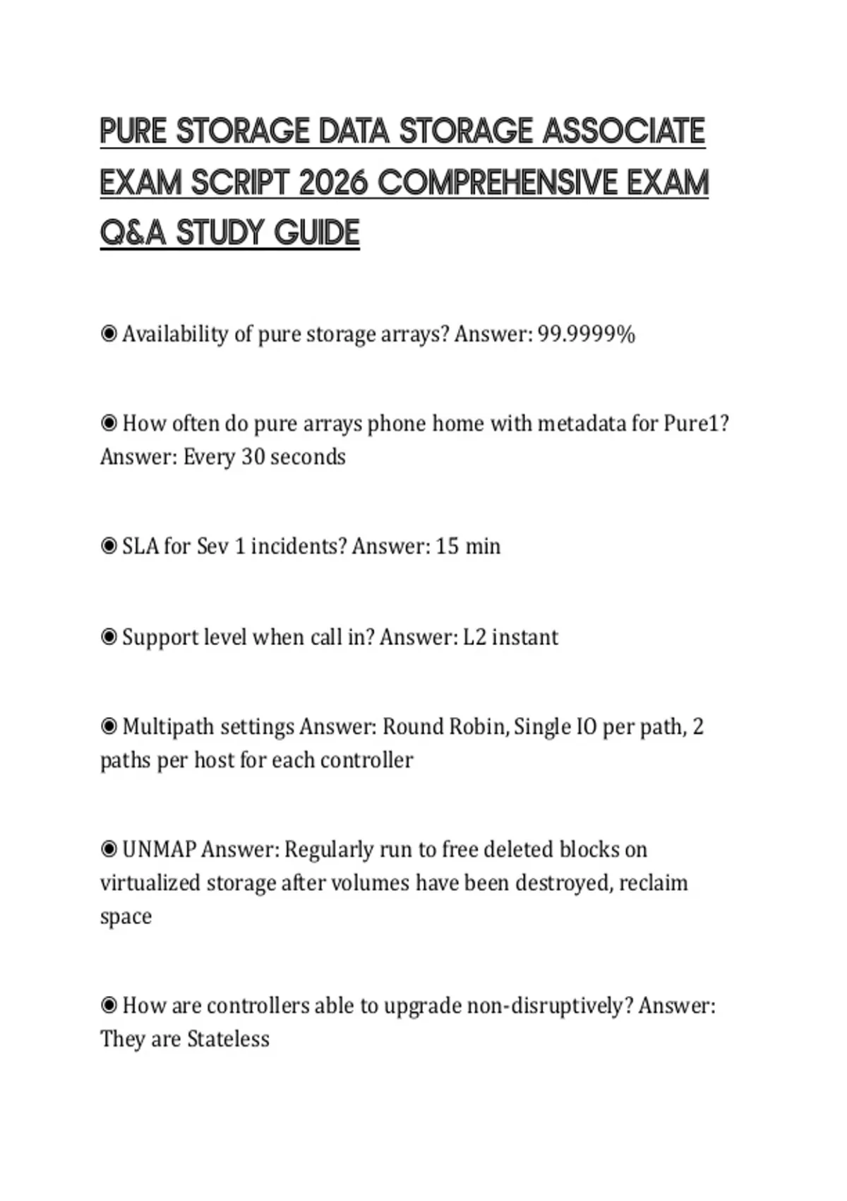 PURE STORAGE DATA STORAGE ASSOCIATE EXAM SCRIPT 2026 COMPREHENSIVE EXAM Q&A STUDY GUIDE