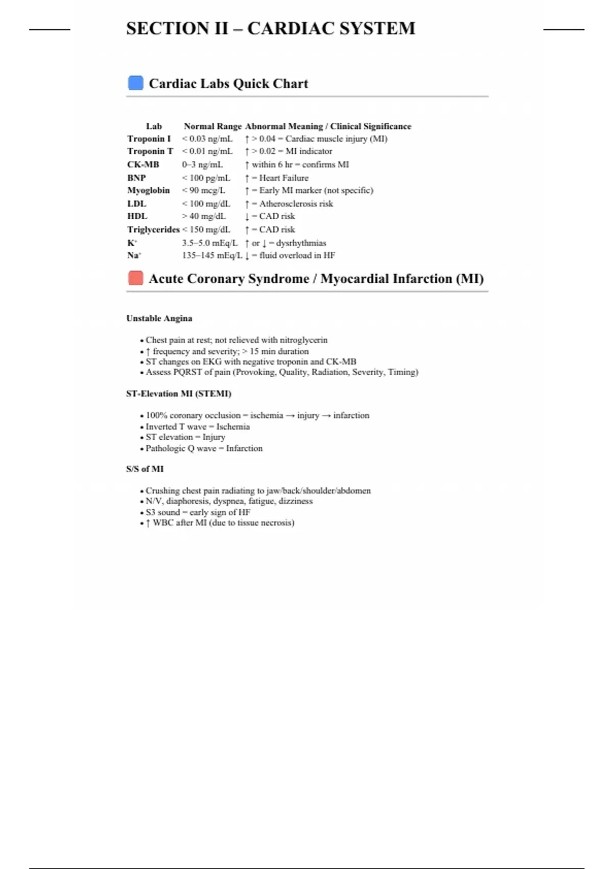 Cardiac Labs Quick Chart