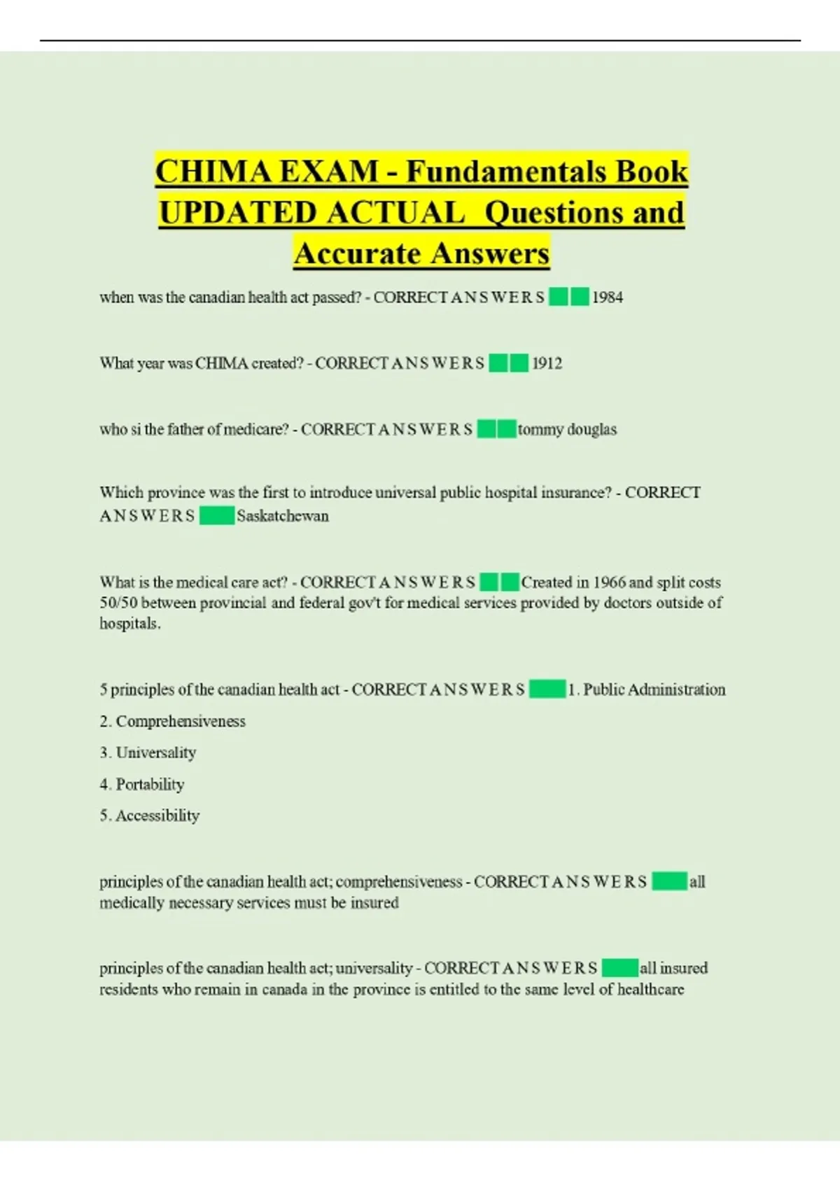 CHIMA ЕХАМ - Fundamentals Book UPDATED ACTUAL Questions and Accurate Answers