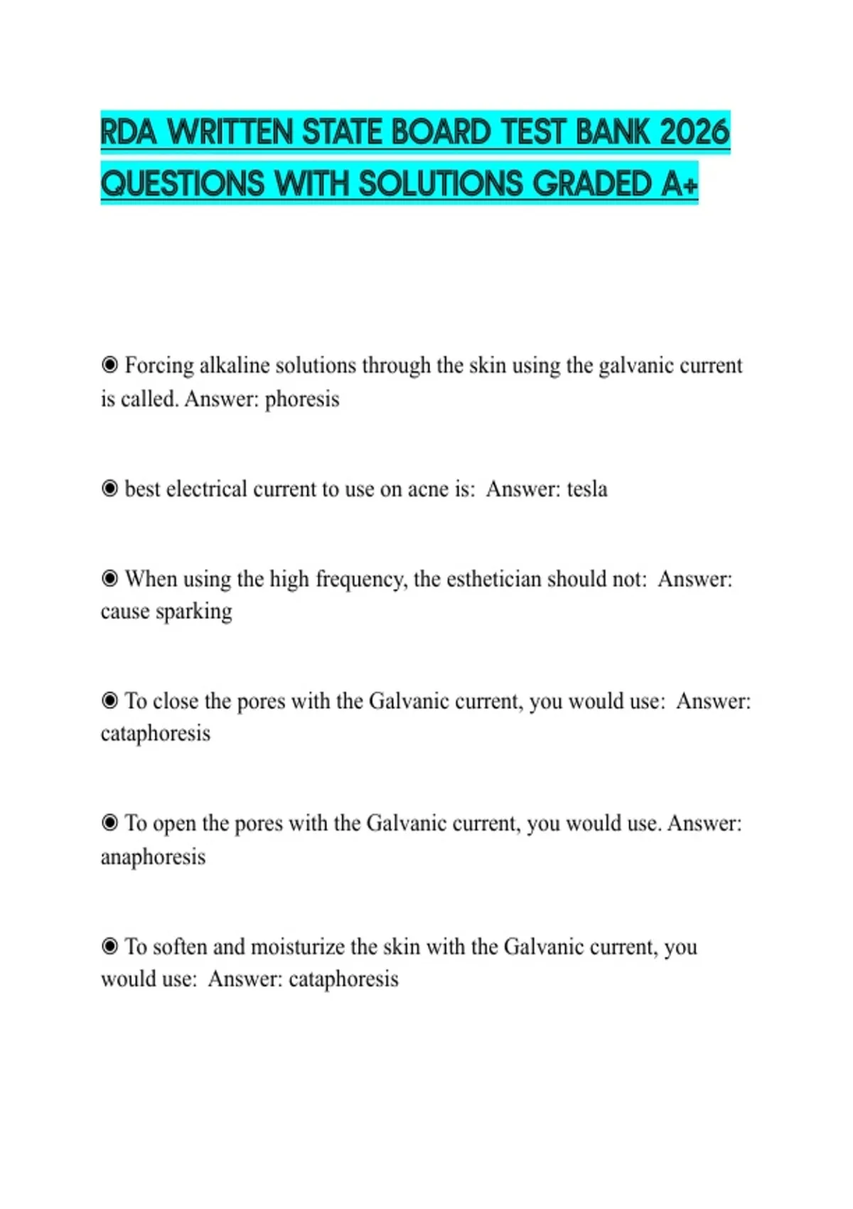 RDA WRITTEN STATE BOARD TEST BANK 2026