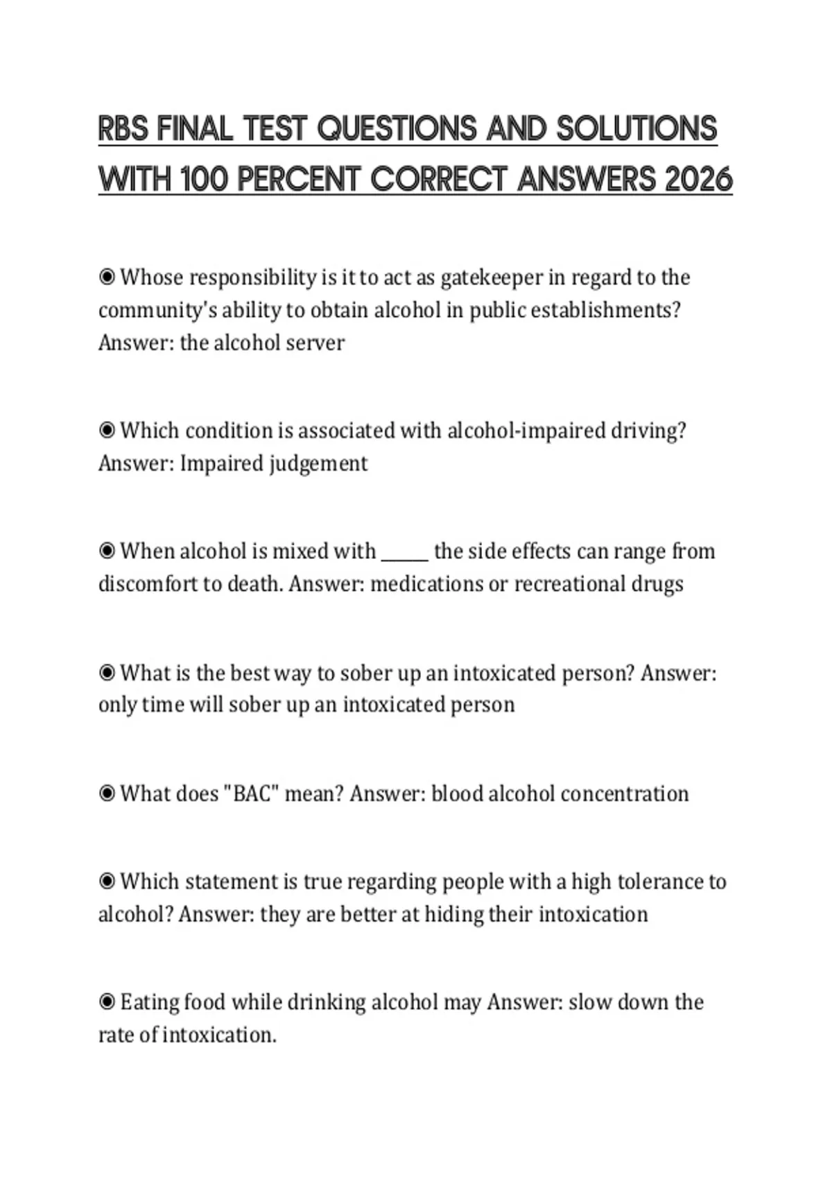 RBS FINAL TEST QUESTIONS AND SOLUTIONS