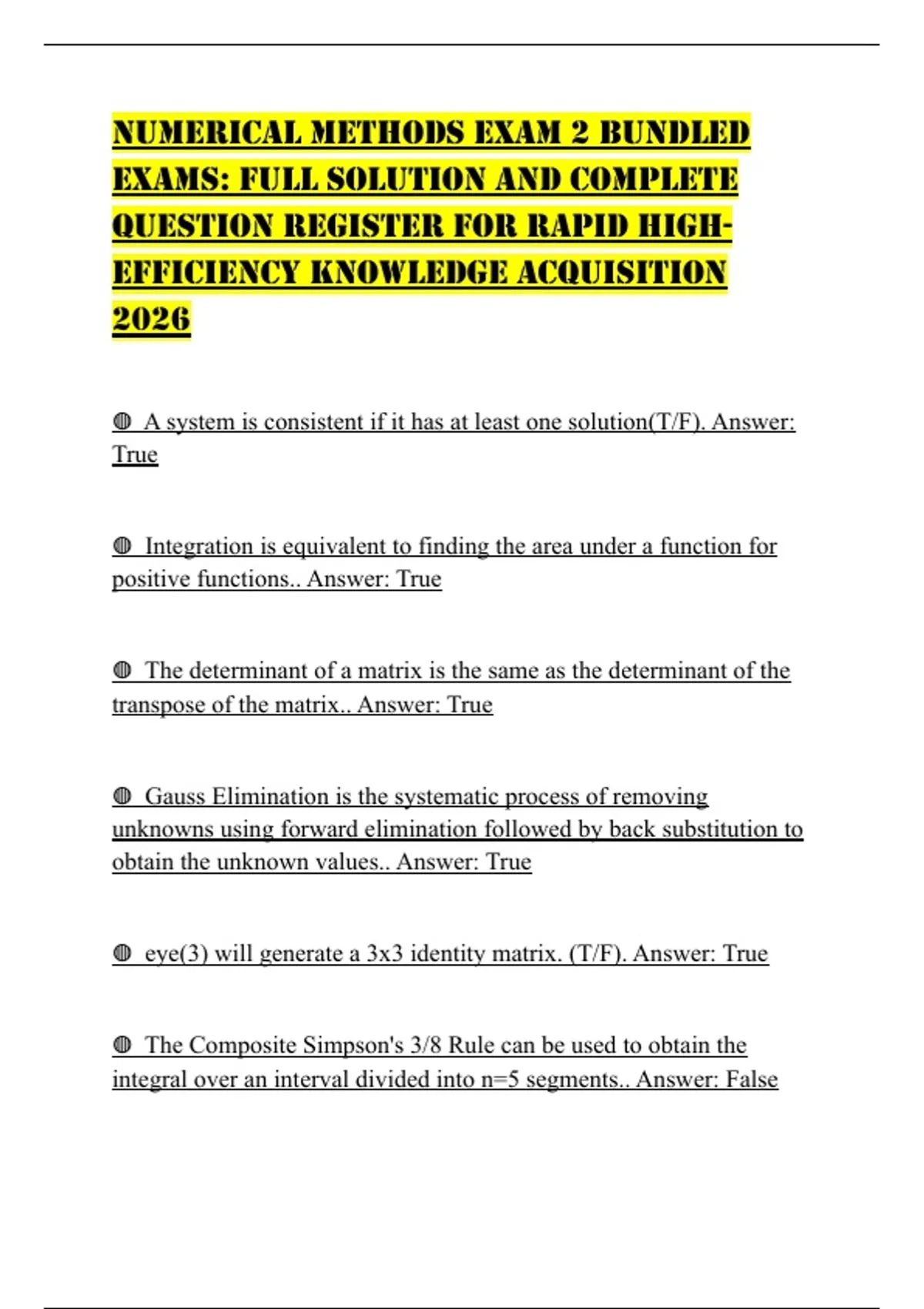 NUMERICAL METHODS EXAM 2 BUNDLED EXAMS: FULL SOLUTION AND COMPLETE QUESTION REGISTER FOR RAPID HIGHEFFICIENCY KNOWLEDGE ACQUISITION 2026