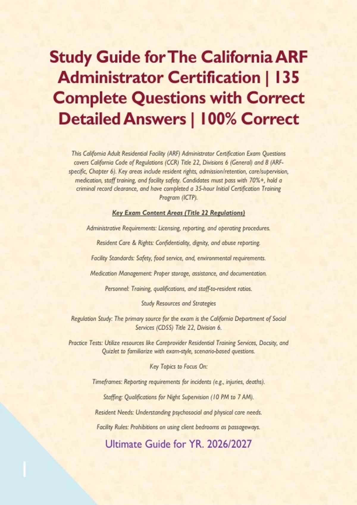 This California Adult Residential Facility (ARF) Administrator Certification Exam Questions