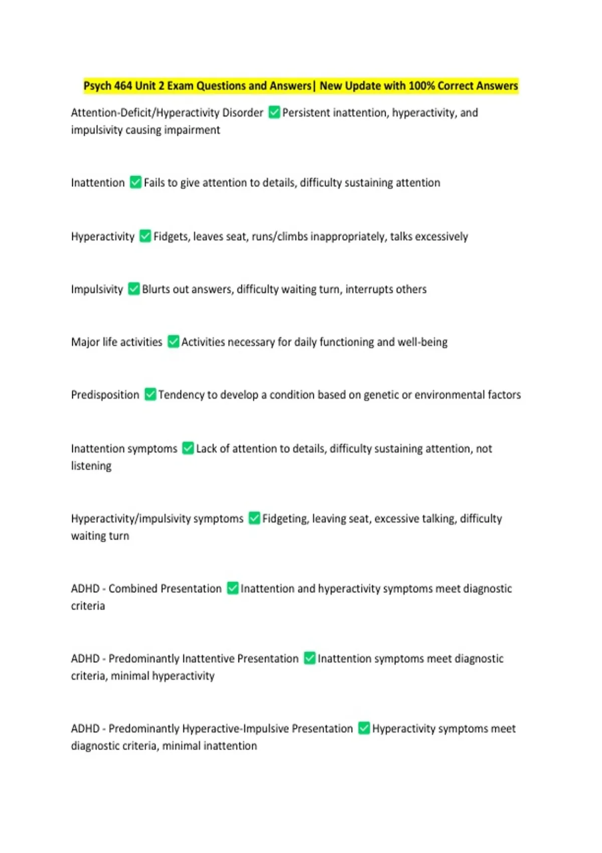 Psych 464 Unit 2 Exam Questions and Answers| New Update with 100% Correct Answers