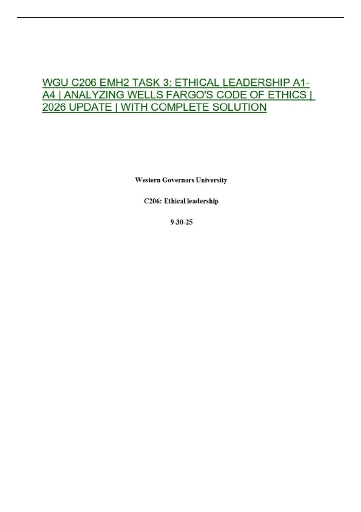 WGU C206 EMH2 TASK 3: ETHICAL LEADERSHIP A1-A4 | ANALYZING WELLS FARGO'S CODE OF ETHICS | 2026 UPDATE | WITH COMPLETE SOLUTION