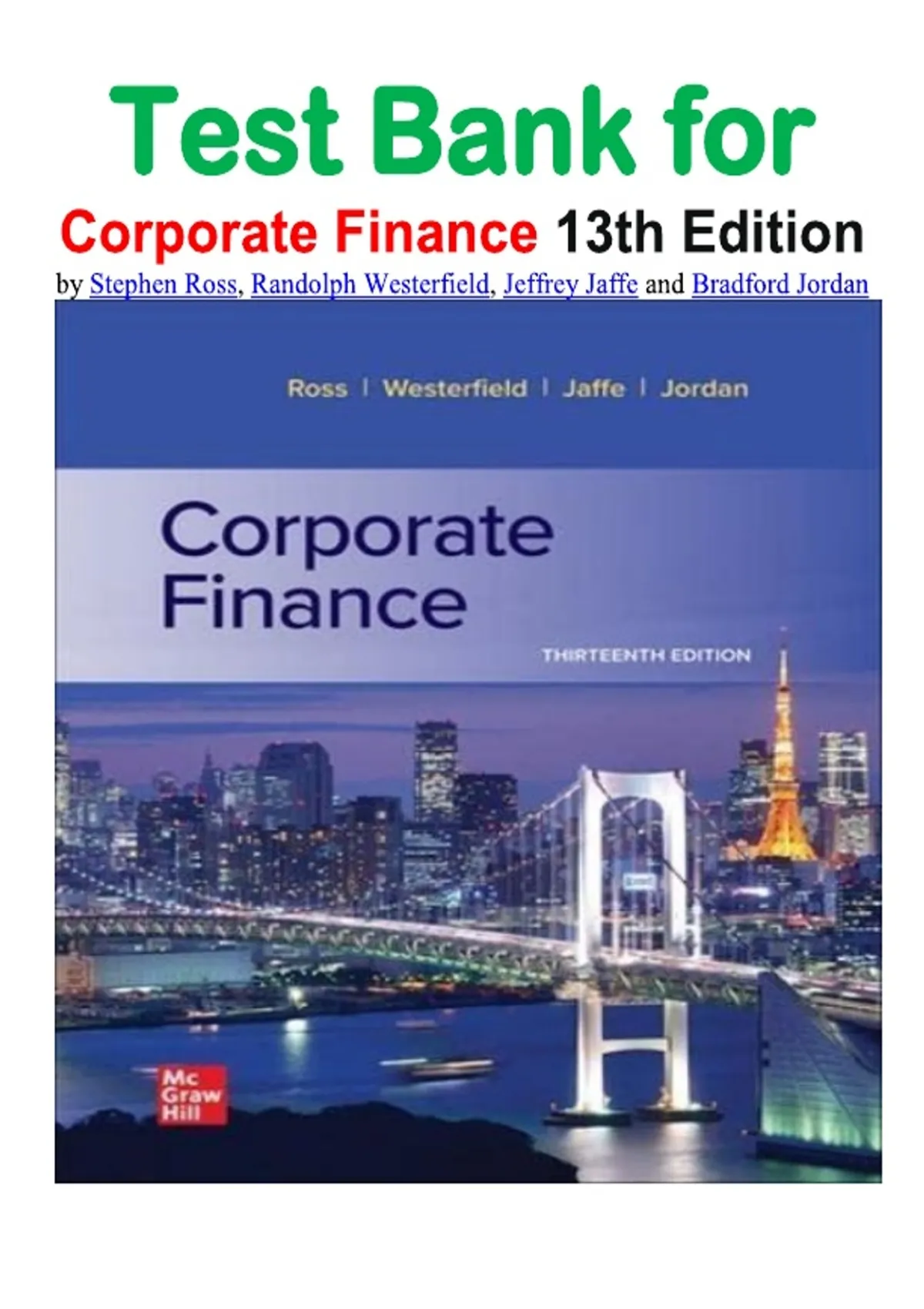 Test Bank for Corporate Finance 13th Edition by Stephen Ross, Randolph Westerfield, Jeffrey Jaffe and Bradford Jordan isbn- 9781260772388 All Chapters Covered Verified Guide