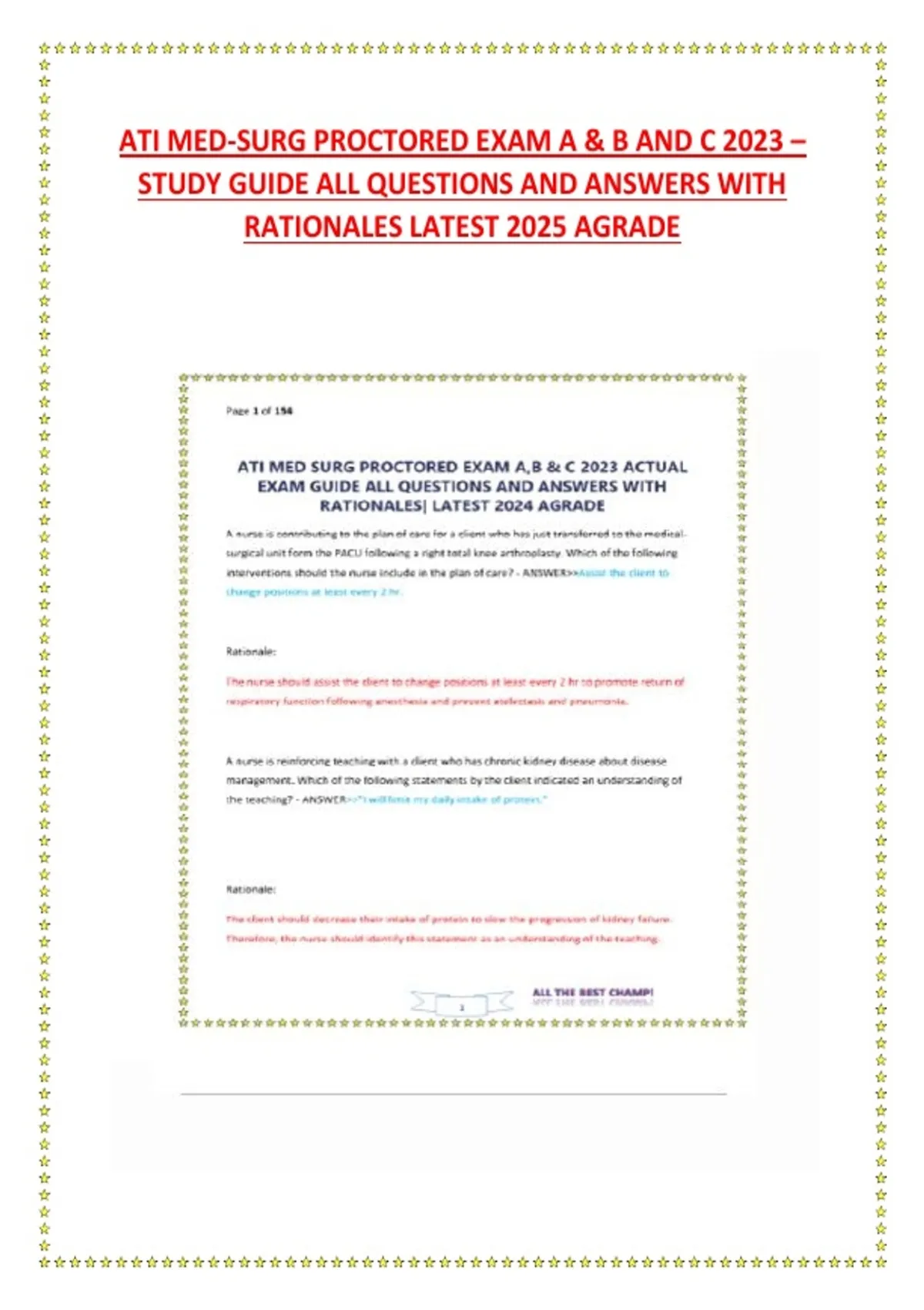ATI MED-SURG PROCTORED EXAM A & B AND C 2023 – STUDY GUIDE ALL QUESTIONS AND ANSWERS WITH RATIONALES LATEST 2025 AGRADE
