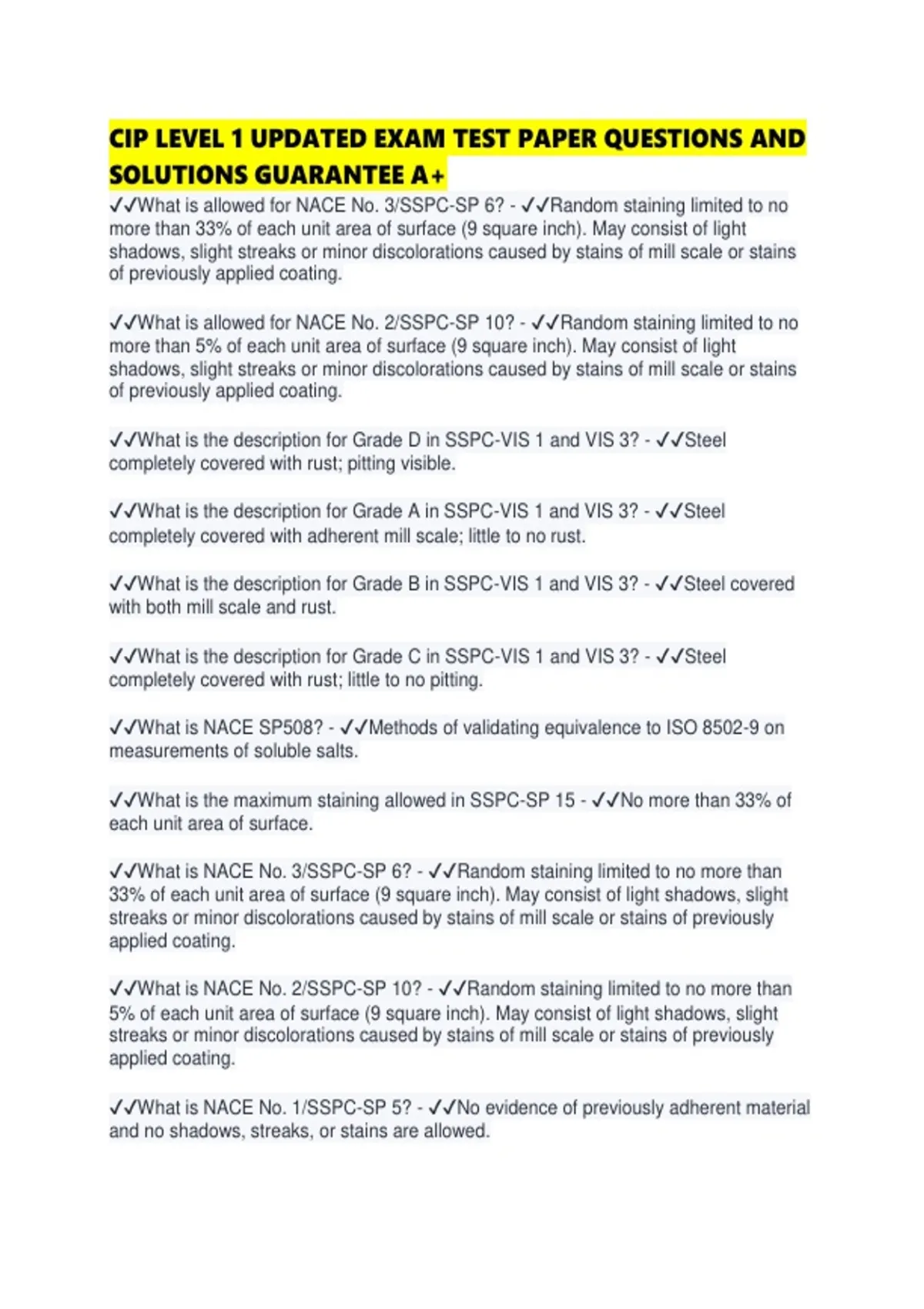 ✔✔What is NACE No. 2/SSPC-SP 10? - ✔✔Random staining limited to no more than