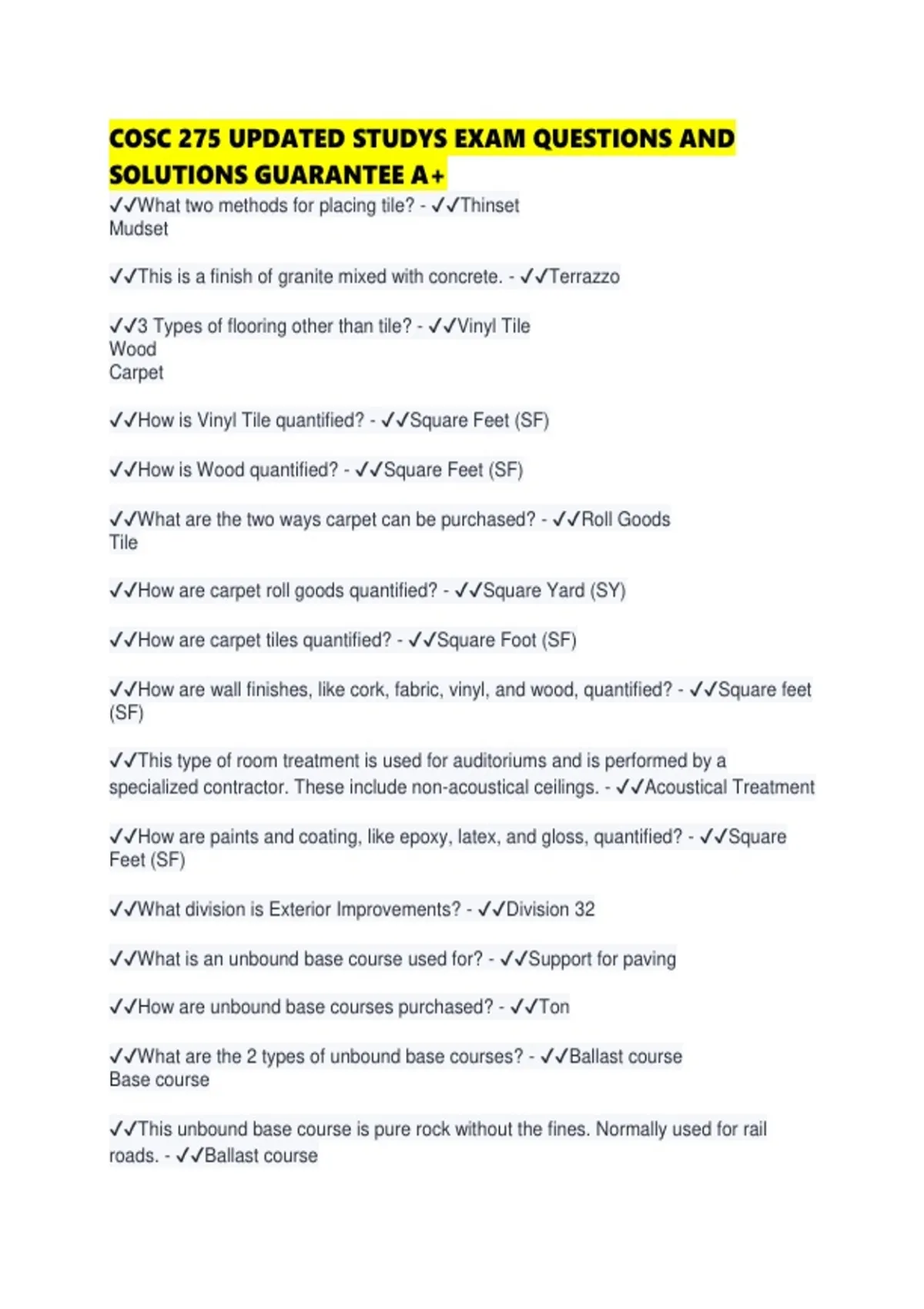 ✔✔What is an unbound base course used for? - ✔✔Support for paving