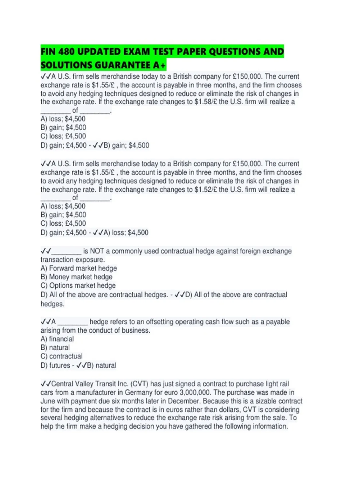 ✔✔Refer to Instruction 10.1. CVT chooses to hedge its transaction exposure in the