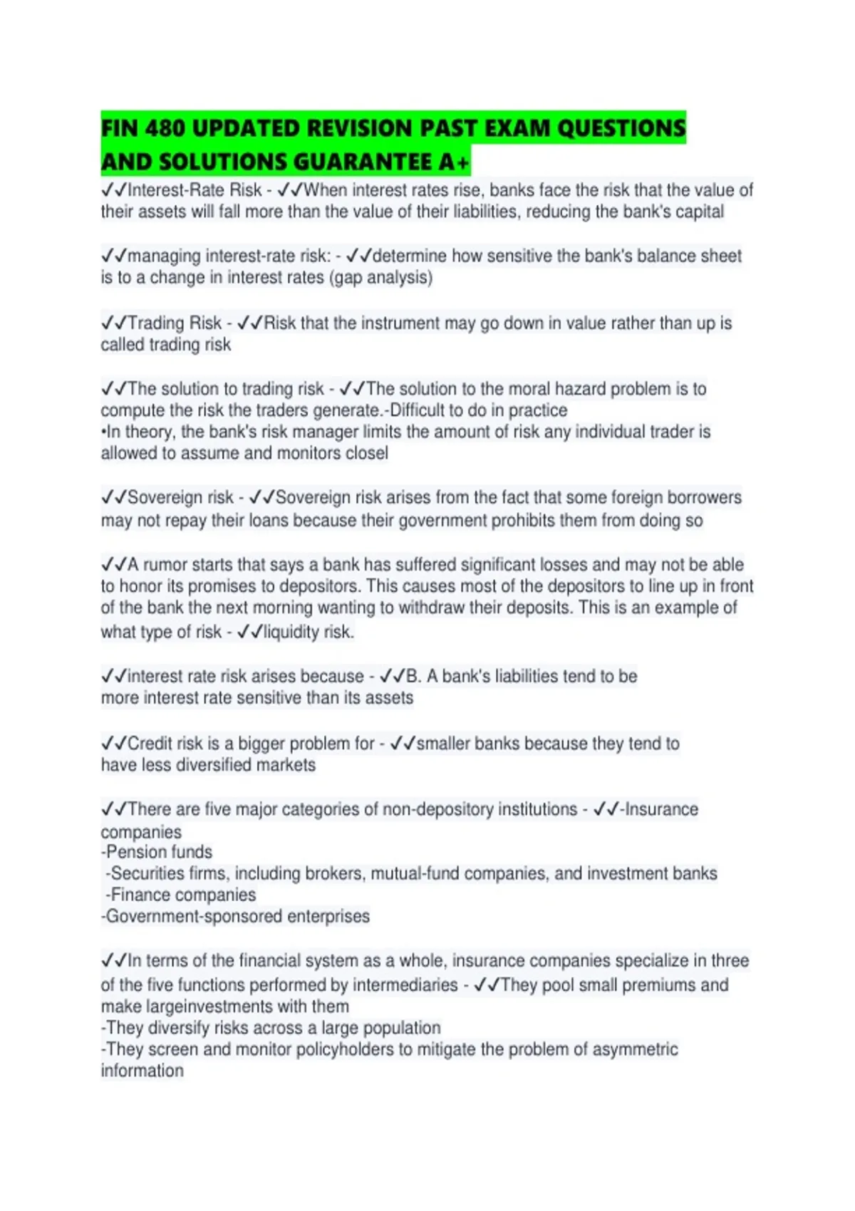 FIN 480 UPDATED REVISION PAST EXAM QUESTIONS AND SOLUTIONS GUARANTEE