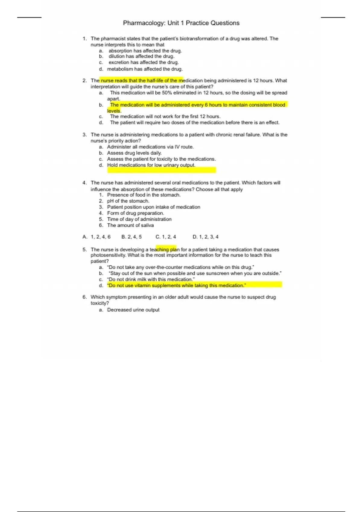 1. The pharmacist states that the patient’s biotransformation of a drug was altered. The