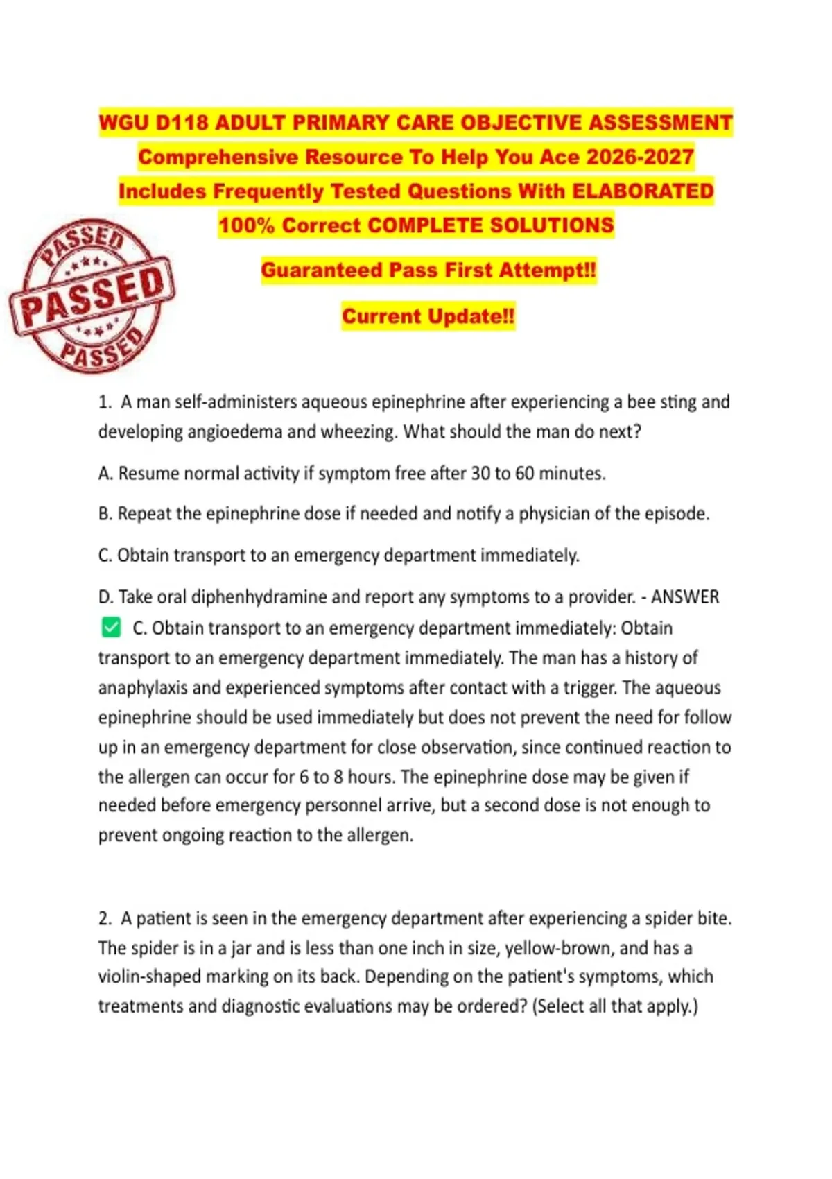 2. A patient is seen in the emergency department after experiencing a spider bite.