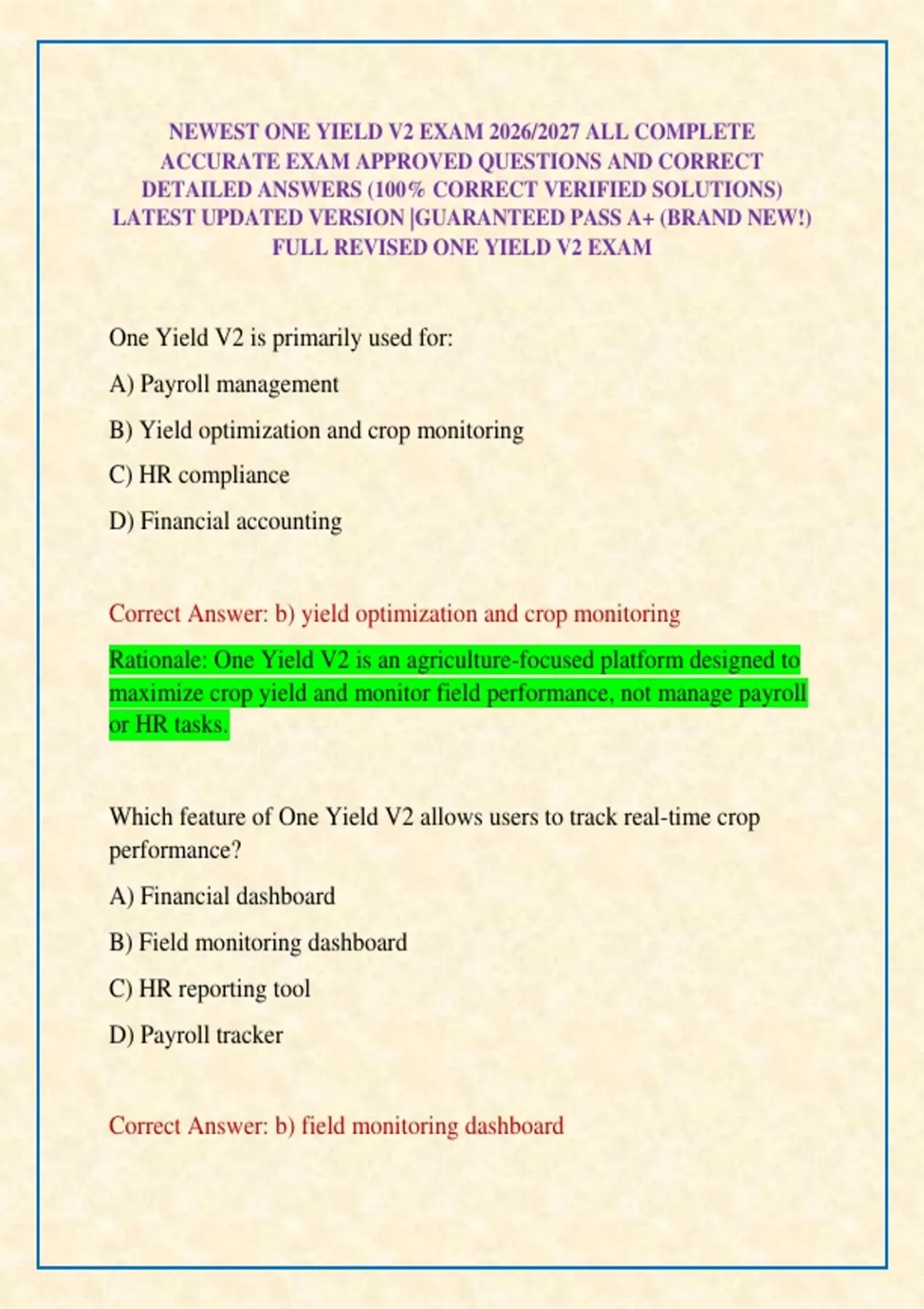 FULL REVISED ONE YIELD V2 EXAM