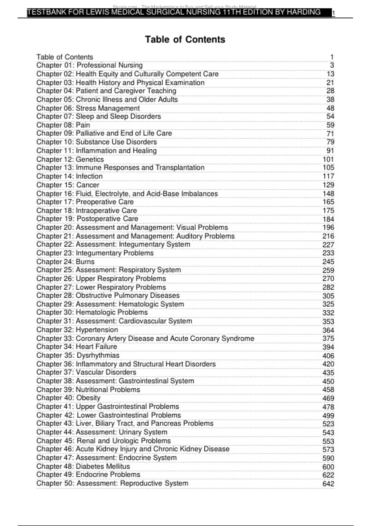 , Test Bank - Lewis's Medical Surgical Nursing (11th Edition by Harding)