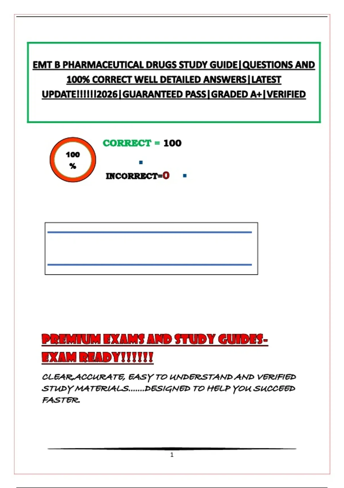 EMT B PHARMACEUTICAL DRUGS STUDY GUIDE|QUESTIONS AND 100% CORRECT WELL DETAILED ANSWERS|LATEST UPDATE!!!!!!2026|GUARANTEED PASS|GRADED A+|VERIFIED
