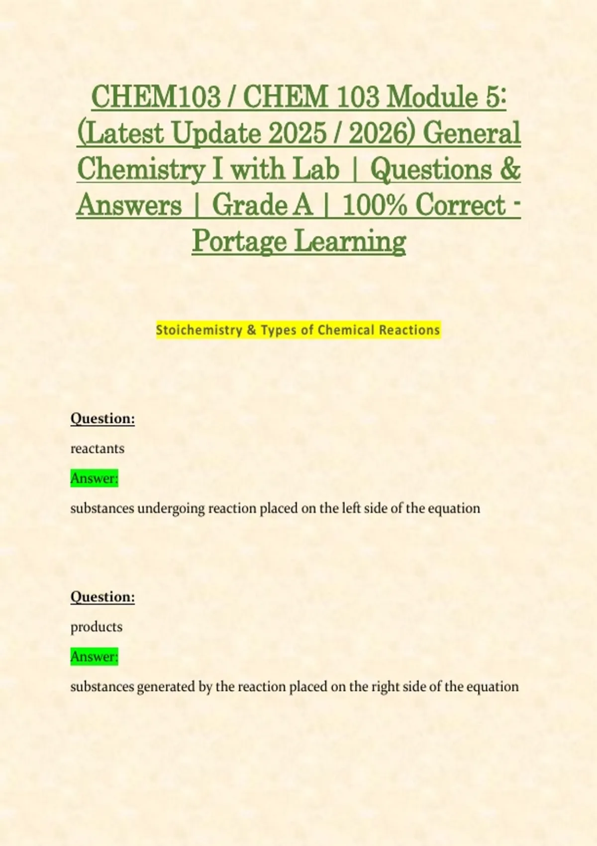 Chemistry I with Lab | Questions &