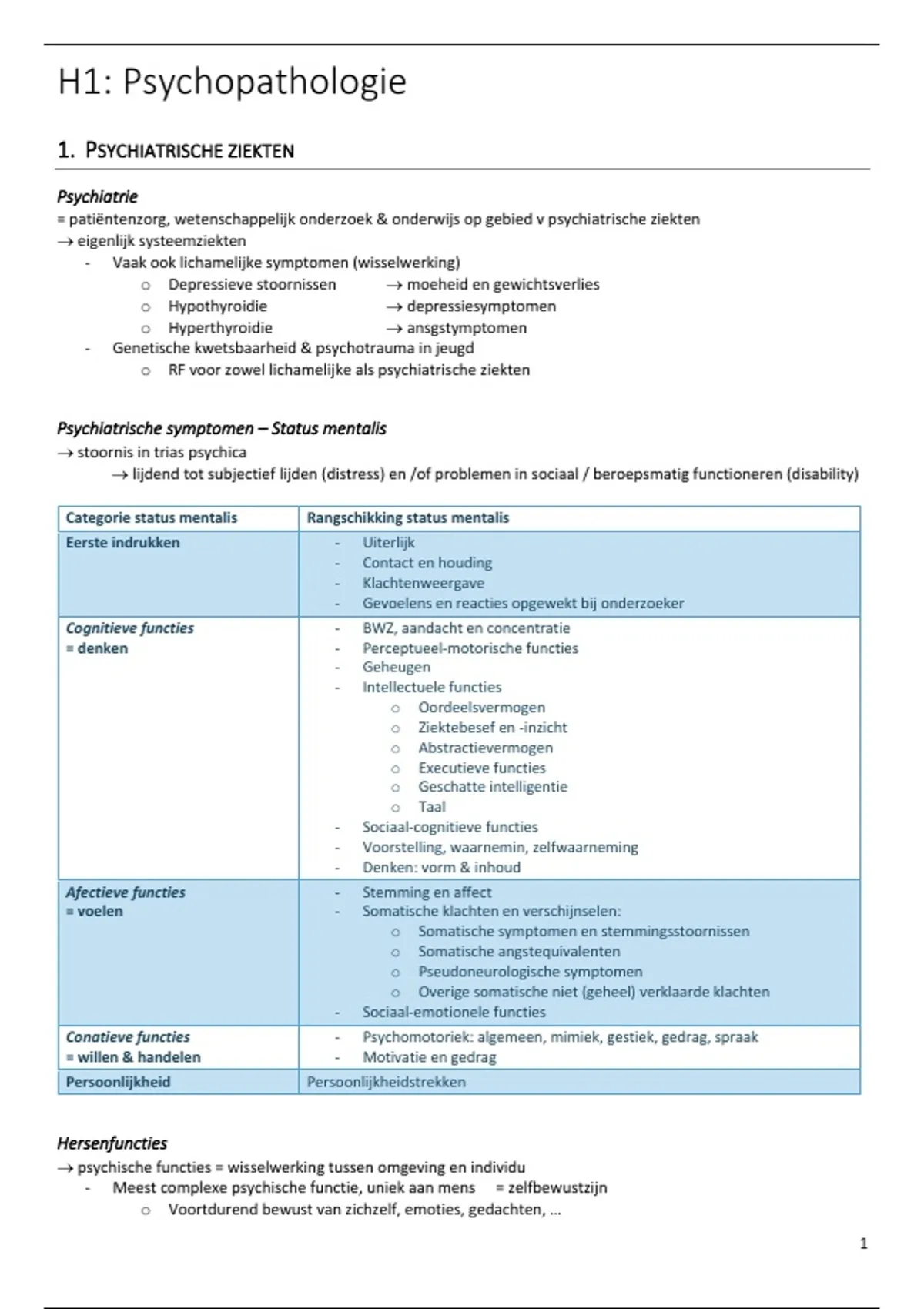 - Syndroom + beloop + etiopathogenese (eenduidige oorzaak, vb hypoth, depressie na infectie)