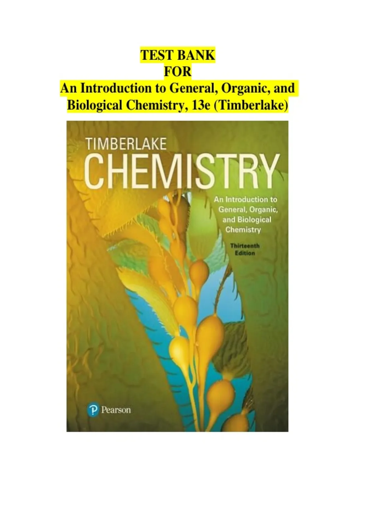 This comprehensive test bank accompanies An Introduction to General, Organic, and Biological Chemistry, 13th Edition by Timberlake, covering Chapters 1 through 8 with over 1,300 practice questions. It includes multiple-choice, short-answer, true/false, and matching questions—all with verified answers—aligned with key learning objectives and global outcomes. Designed to reinforce core chemistry concepts, measurement, matter, atoms, periodic trends, nuclear chemistry, chemical bonding, moles, reactions, and gases, this resource is ideal for students preparing for exams, instructors building assessments, or anyone seeking to master foundational chemistry through structured practice and self-assessment.
