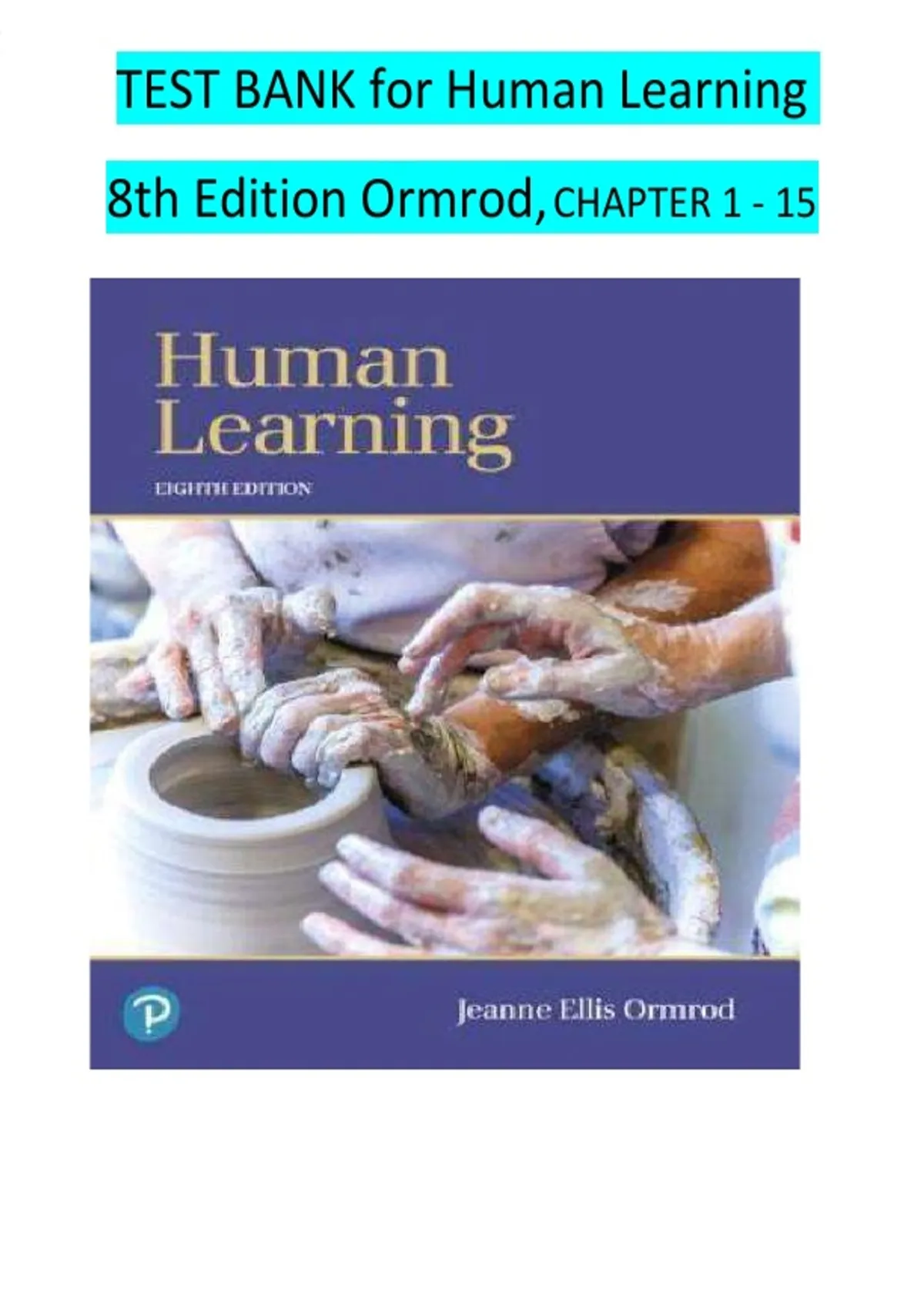 TEST BANK for Human Learning 8th Edition Ormrod, CHAPTER 1 - 15TEST BANK for Human Learning 8th Edition Ormrod, CHAPTER 1 - 15TEST BANK for Human Learning 8th Edition Ormrod, CHAPTER 1 - 15