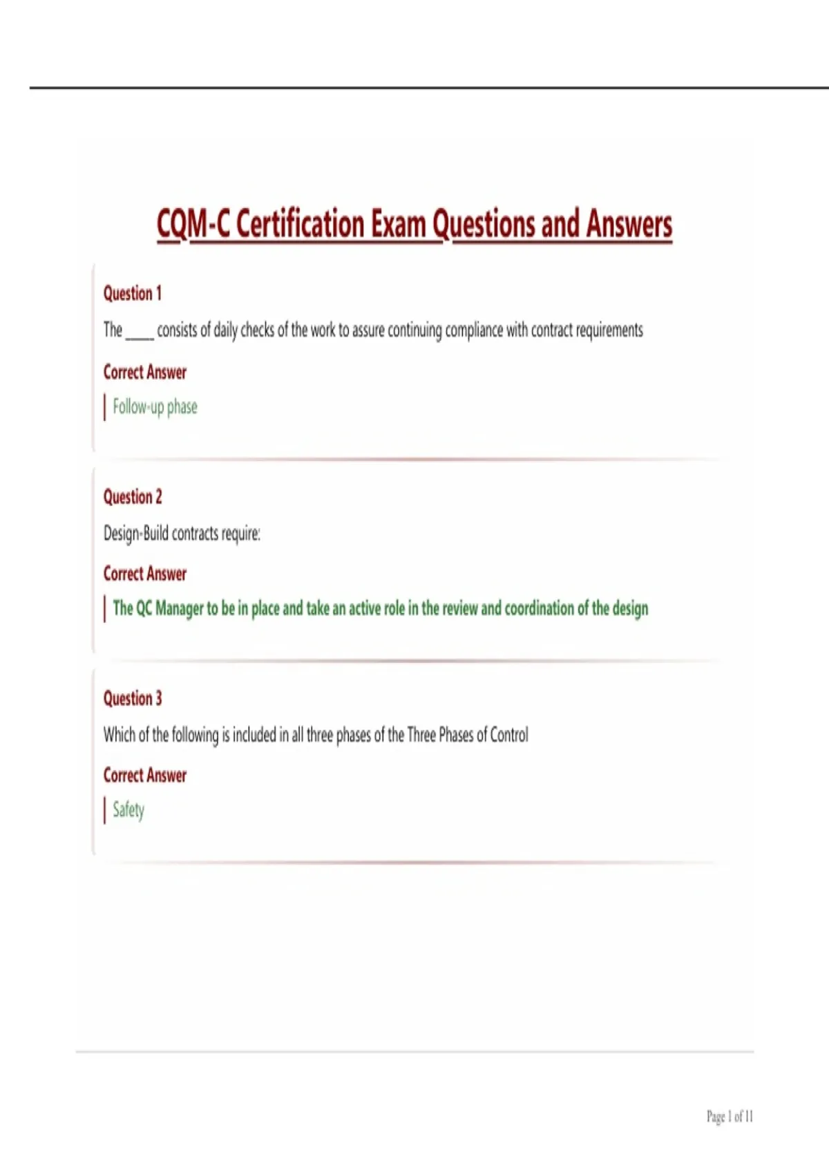 CQM-C Certification Exam Questions and Answers.