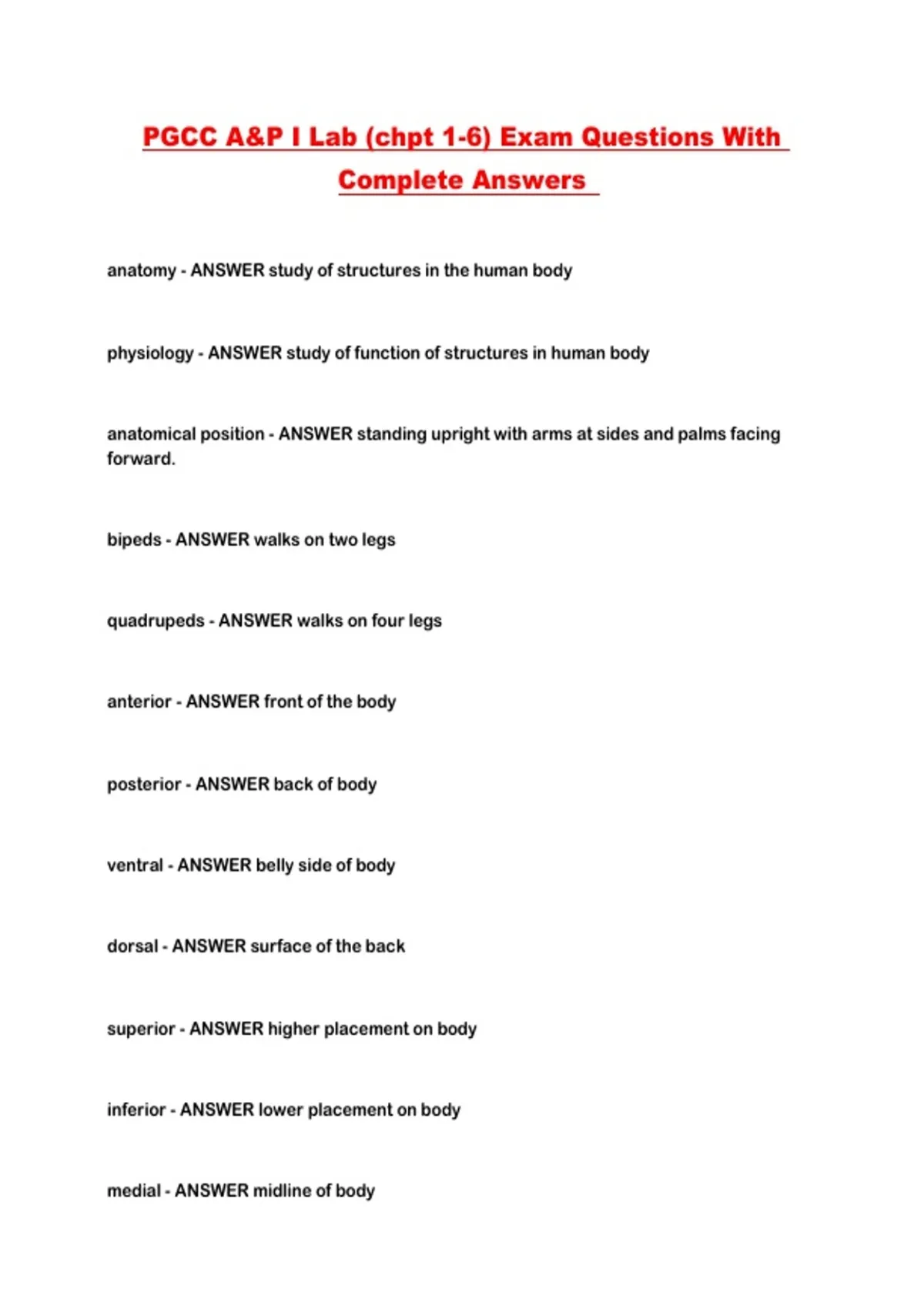 PGCC A&P I Lab (chpt 1-6) Exam Questions With Complete Answers ...