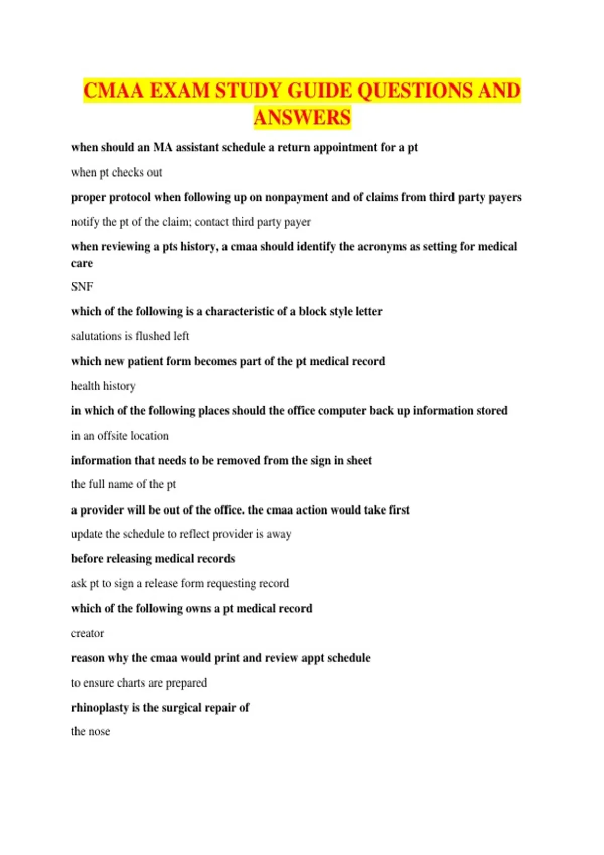 CMAA EXAM STUDY GUIDE QUESTIONS AND ANSWERS