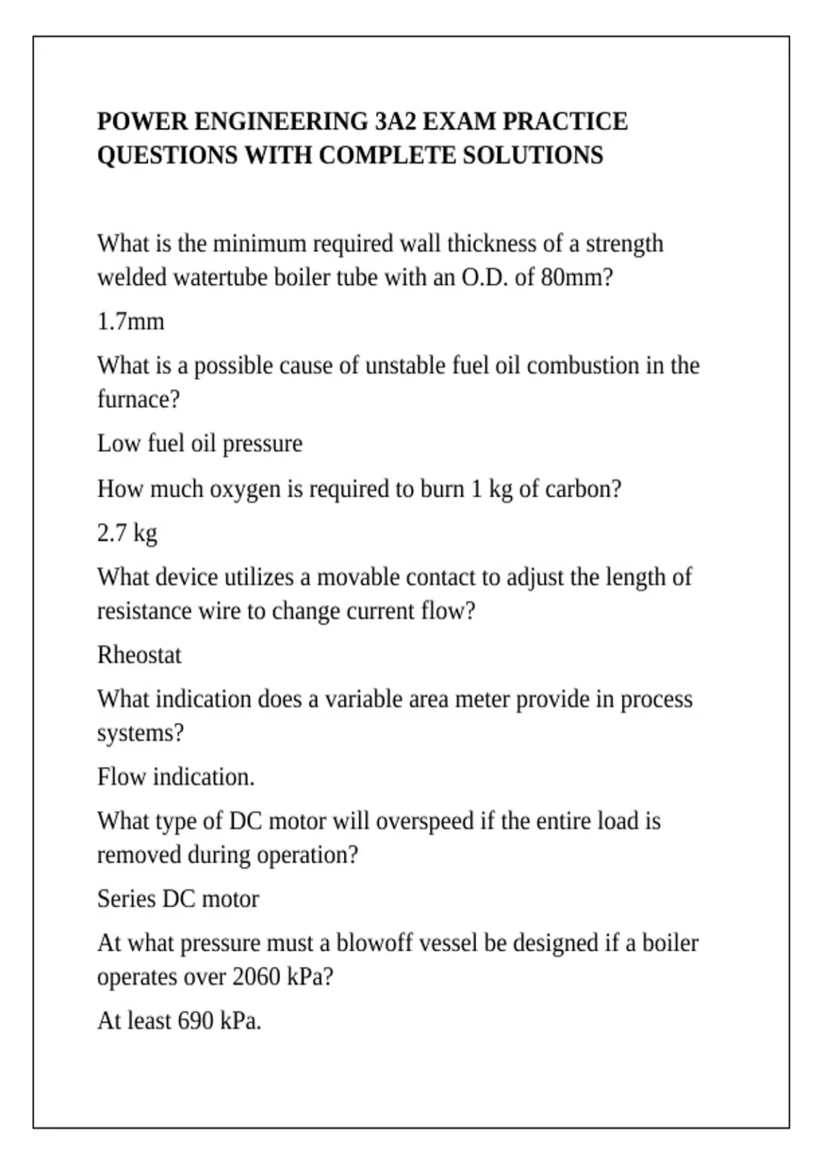 POWER ENGINEERING 3A2 EXAM PRACTICE